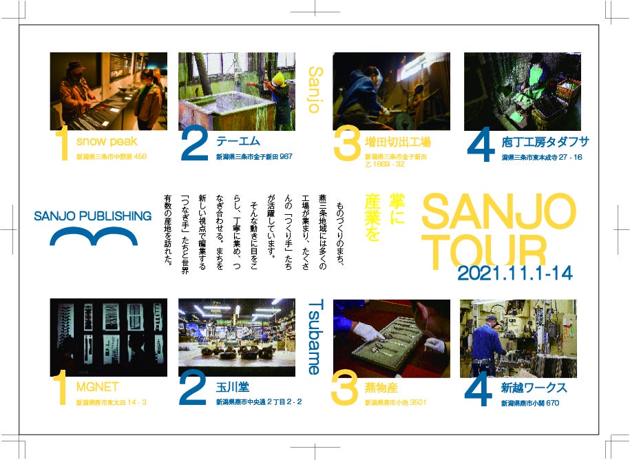 ※フリーペーパーではWebマガジンで特集する、燕三条地域をめぐる旅『掌に産業を。』シリーズも取り上げる予定。