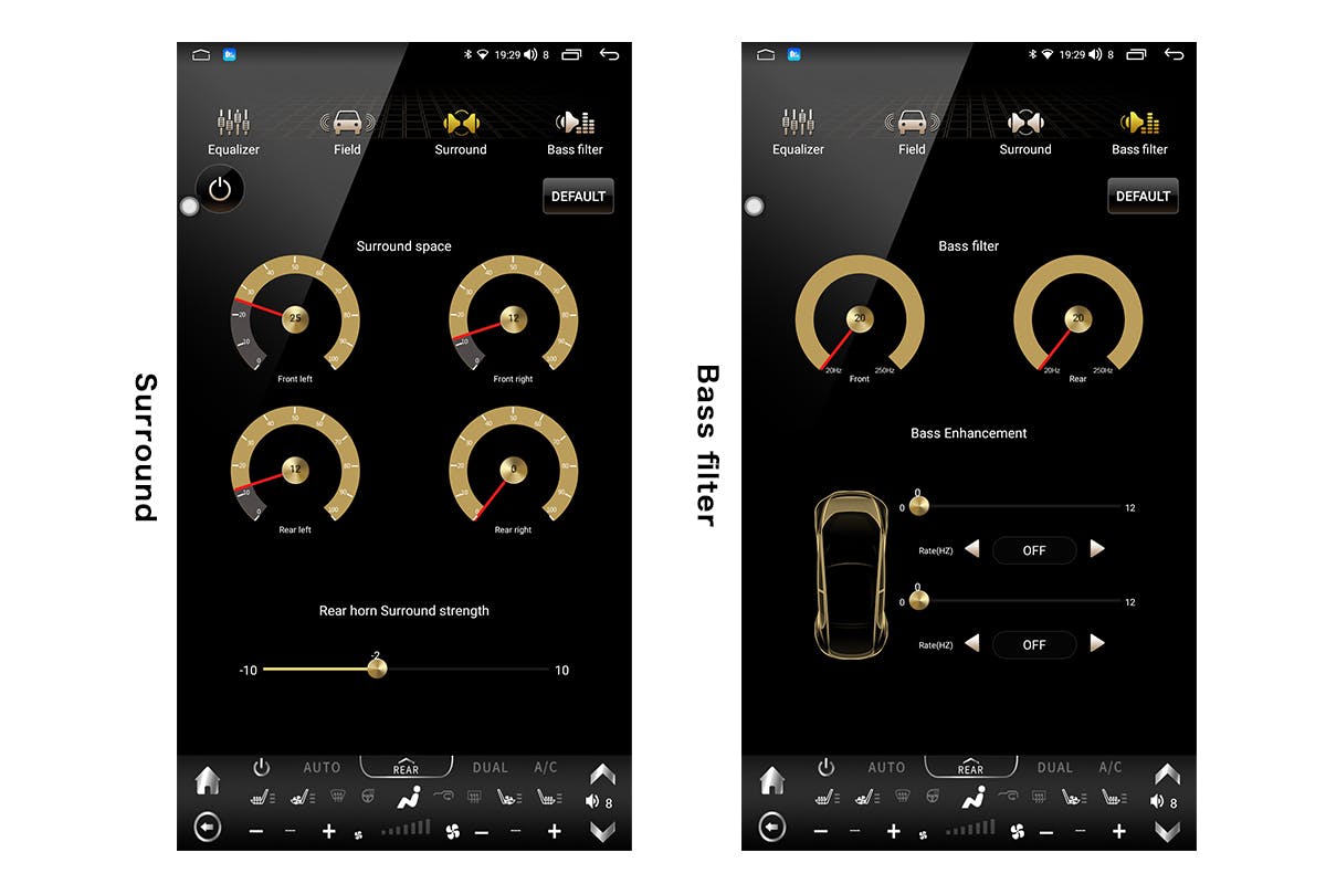「ロック」「クラシック」などのモードに加え、好みに合わせたオリジナルサラウンド設定が可能です。大画面でより直感的な操作を実現しています。