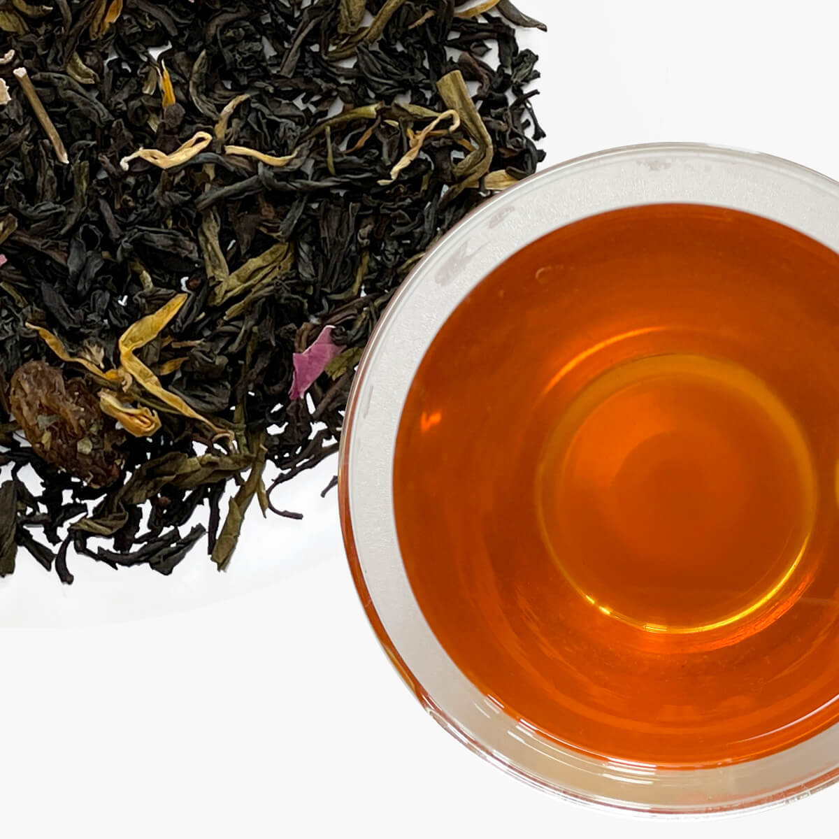 フレーバーティーというと1種類の果物の香りをつけたシングルフレーバーティーが主流ですが、amsu teaのフレーバーティーは「ブレンドフレーバーティー」です。