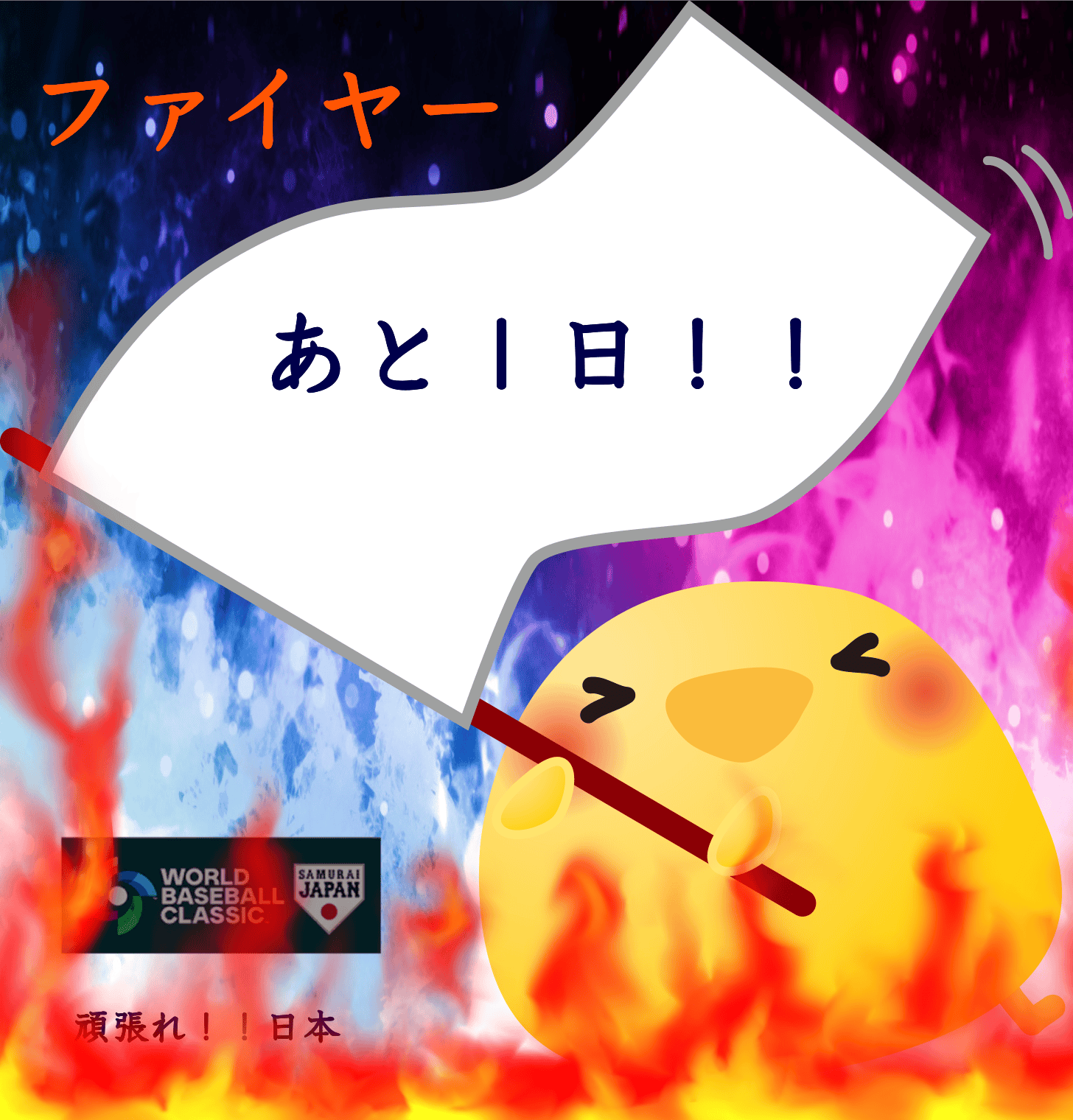 2023/03/16 07:11<ひよちゃんも炎の中、我が身を顧みず、応援の旗を振ってくれています!>まだ、間に合う!! 応援をよろしくね(^_-)-☆ もっと見る