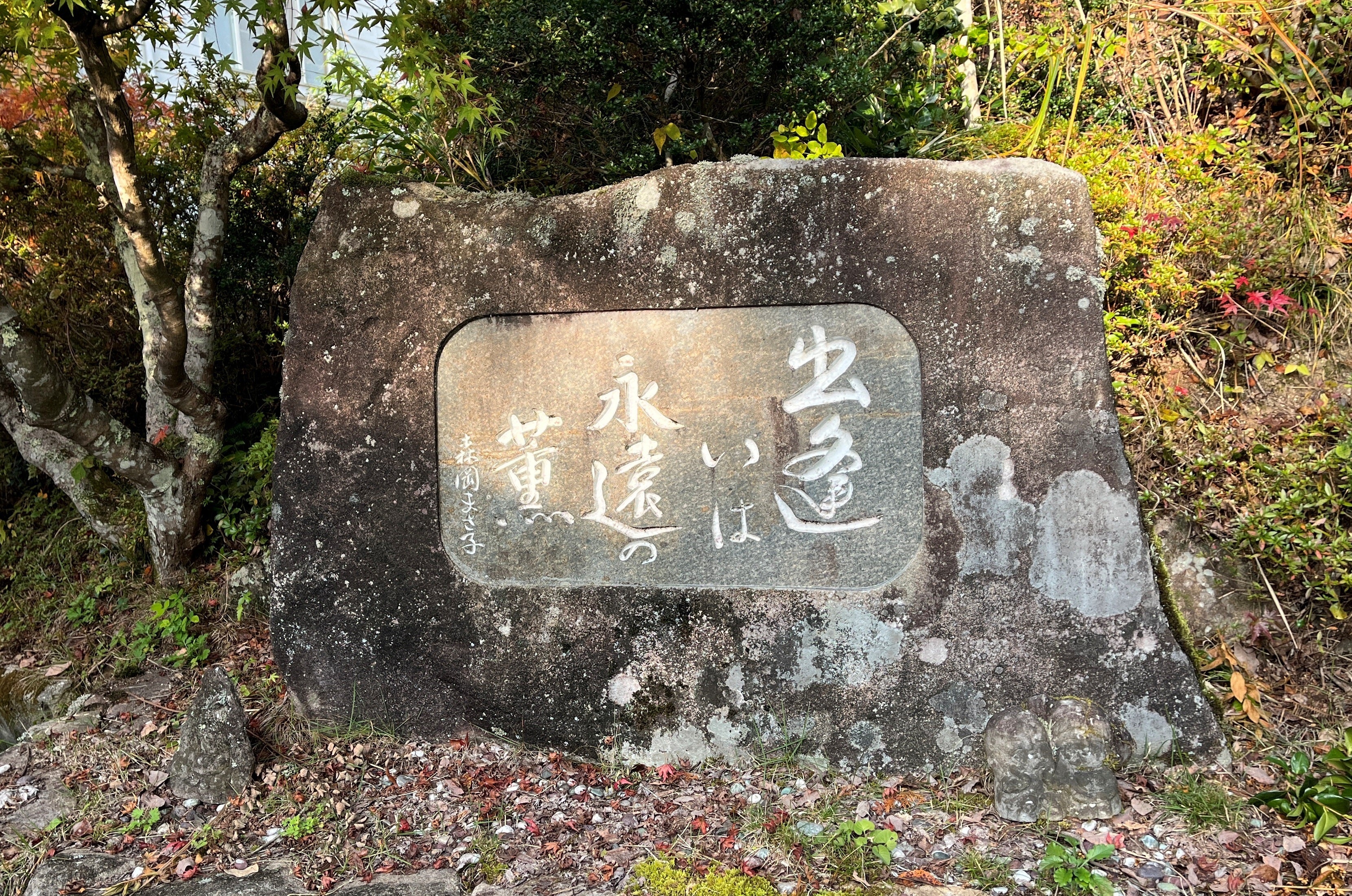『出逢いは永遠の薫』。M.Gユースホステルのある敷地内に創業者・森岡まさ子の記念碑があります。「この世に生まれ、人の出逢いほど神秘的なものはありません。その出逢いの中から学び、教えられ、育てられ、助けられ、人生の様々な経験をさせてもらえます。素晴らしい出逢いがあればこそ、人生は豊かになる」そんな創業者の想いを引き継ぎ、これからの未来ある若者たちに多くの出逢いをして欲しい、その一助になる“場”になればと思っています。