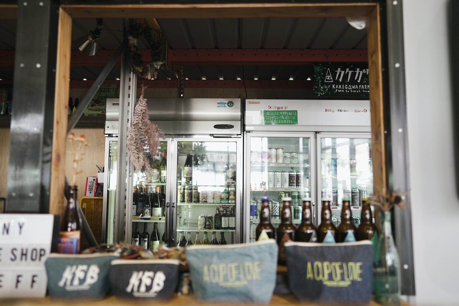 今回、ボトルショップには、2つの業務用冷蔵庫を導入し、世界中から仕入れたクラフトビールの缶や瓶を置く予定です。キャンプ場で飲むのもよし、お土産として持ち帰ることもできます。
