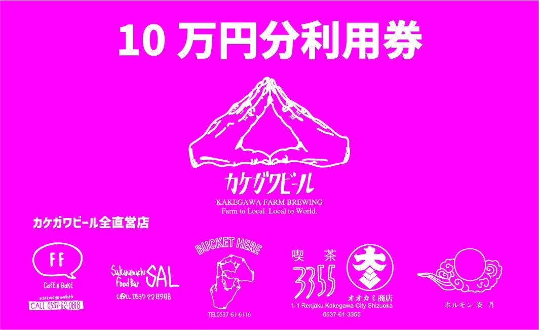 カケガワビールの直営店で使える10万円分の利用券です。カケガワビールを含めて、飲食にご利用いただけます。