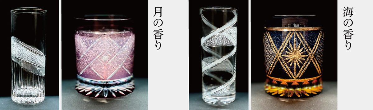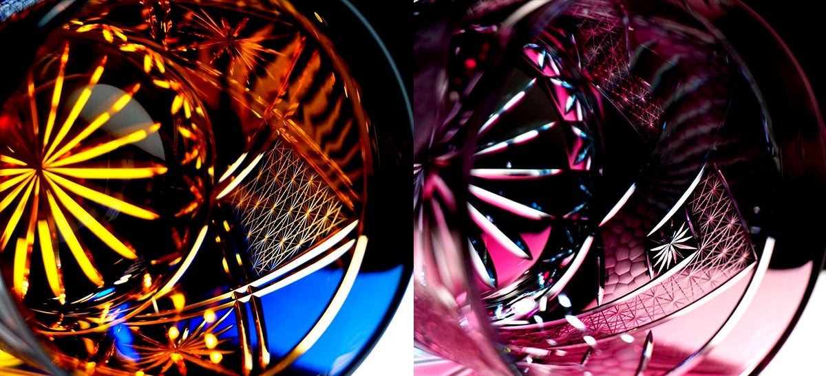 熟練の技術により生み出されるカットと手磨きによってできたグラスは光を宝石のように取り込み
