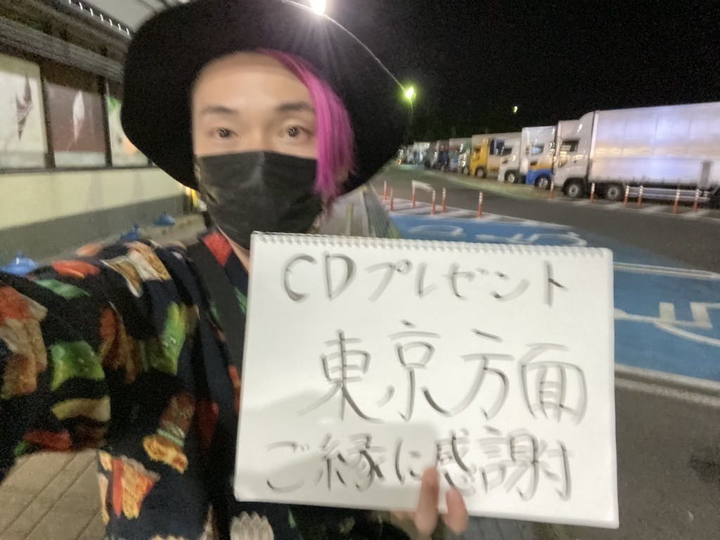 2022/10/08 20:00旅をした時の話僕はよく旅をします。西へ東へ、知らない土地・街・人に会うことが好きでたくさんの刺激や感動をいただいたり、出会った方の人生を旅したり....今まで、旅をして数え切れないくらいの素敵なご縁を本当にいただきました。ーーーーーーーーーー前回旅をしたのは9月5日から9月18日までの約2週間愛媛から東京まで(9/5~9/13)そのあとも東京から大阪まで(9/14~16)ヒッチハイクで移動しました。ーーーーーーーーなぜヒッチハイクをするのか?ーーーーーーーーー答えはシンプル"やりたいからやる"・その中でヒッチハイクの音楽を創りたい・普段会うことがない方と奇跡的に会うきっかけ・肩書きが通用しないノンフィルターの世界・挑戦をし続けるため・限界を自分が決めないようにするため・会いたい人に土産話を持っていきたいため・誰もがやろうとしない経験を手に入れるため・夢の話が初めましての方にも臨場感があるか?・コミュニケーション能力の発揮・お金じゃ買えない価値を感じるため・考え方の幅を拡げるため・思い出を色濃くしたいため・感動、幸せの実感、当たり前じゃないことへの気づき・知らない街に行ってみたいから探せば理由はたくさんあるのかもしれないですし人によって理由が1個の人もいれば10個の人もいます。それでいいんです。結局ぼくは、"やりたいからやっている"ただ、それだけなんです。ーーーーーーーーーーーヒッチハイクで様々なドラマがありました。『お洒落だと思ったら年末もそんな素敵なイベントをやられるんですね!息子がアパレルブランドを立ち上げているので、是非ご紹介したいです』『わたしの働いている会社の会長はアニメを作成しているんです。エイムさんのお話を聞いて、とても感銘をうけました。そして、応援しています。』『よくそんなアイディア思いつくねぇ、おれもやりたいことがあったらとっくに仕事やめてるよ。羨ましいわ...本当に応援してる』『三重まで乗せていけるけど、乗ってく?』‑‑‑‑ヒッチハイクをしていると普段会えないタイプの方々に会えます。自分のことも友達のことも知らない人たちに。目を見て手を振ってくれる人もいればごめんねと車の中にいてもリアクションをとる方もいて。嘲笑う人もいれば、頑張ってくださいと言ってくださる方もいて...十人十色という言葉の通り育ってきた環境や捉え方、関わり方表情や仕草、特殊なモノを見た時の反応などそれぞれ全然違うなぁと改めて実感します。それもまたいいんです。それがいいんです。自然なんだと思います。僕がここに書き記している生の感じた声が将来また自分が見た時にどのように変化しているのかそれもまた楽しみです。貴重な経験をいただけているのは仲間たちがいてくれて、応援してくれる人たちがいて温かく見守ってくれている人がいて困ったら相談できる人がいるから挑戦ができています。本当にありがとうございます。この旅で会った人の合計人数142人。改めて、ご縁に感謝申し上げます。Nextプロジェクト... もっと見る