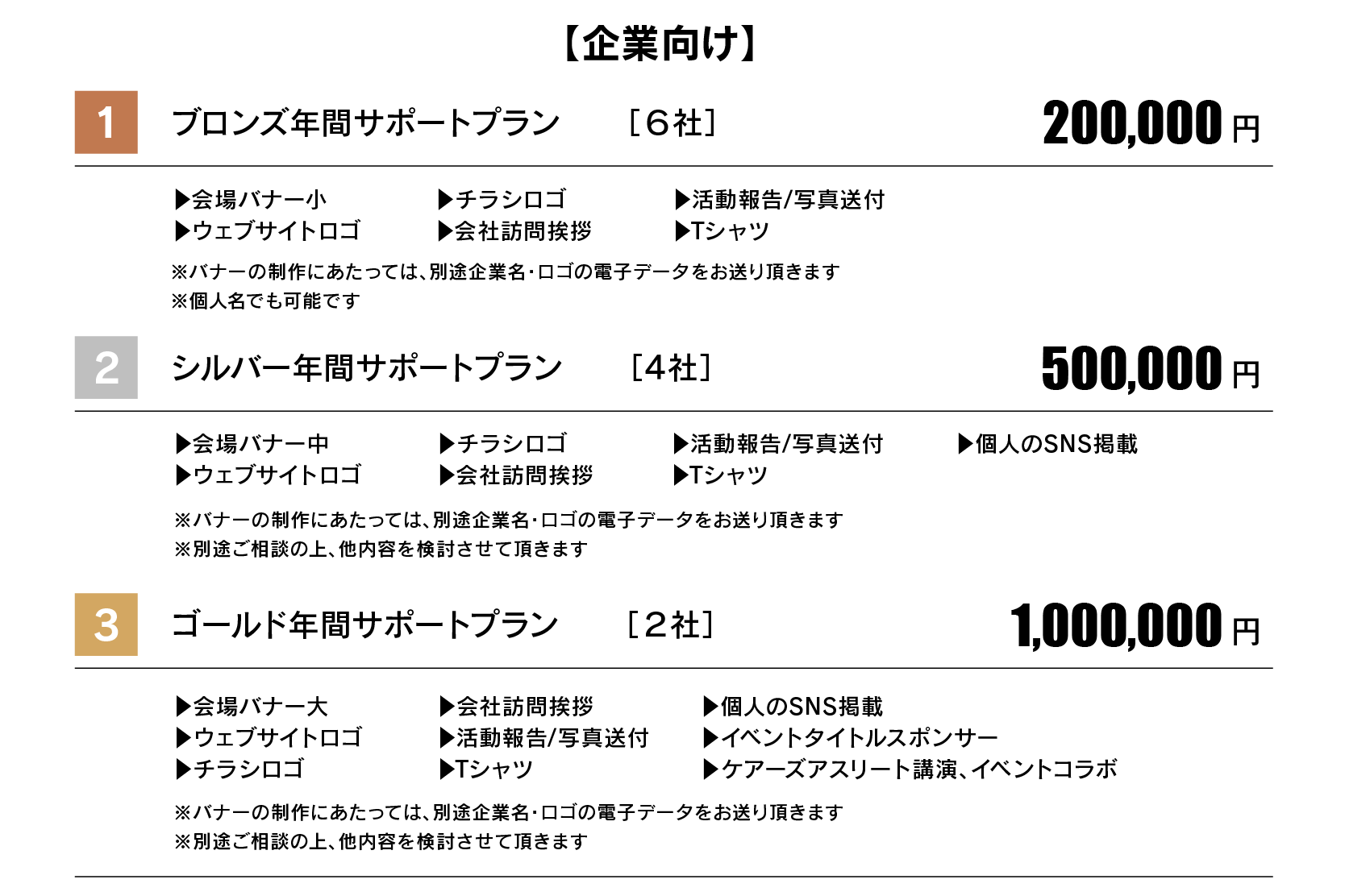 今回のプロジェクトは、「誰かのため、社会のために何かアクションを起こしたい」と思っている”アスリート”と「アスリートにきてほしい」と思っている”施設、企業、学校、自治体”、そして応援してくれる”ファン”を繋ぐSports Caresとしての活動の第一歩をご支援いただきたいと思っています。