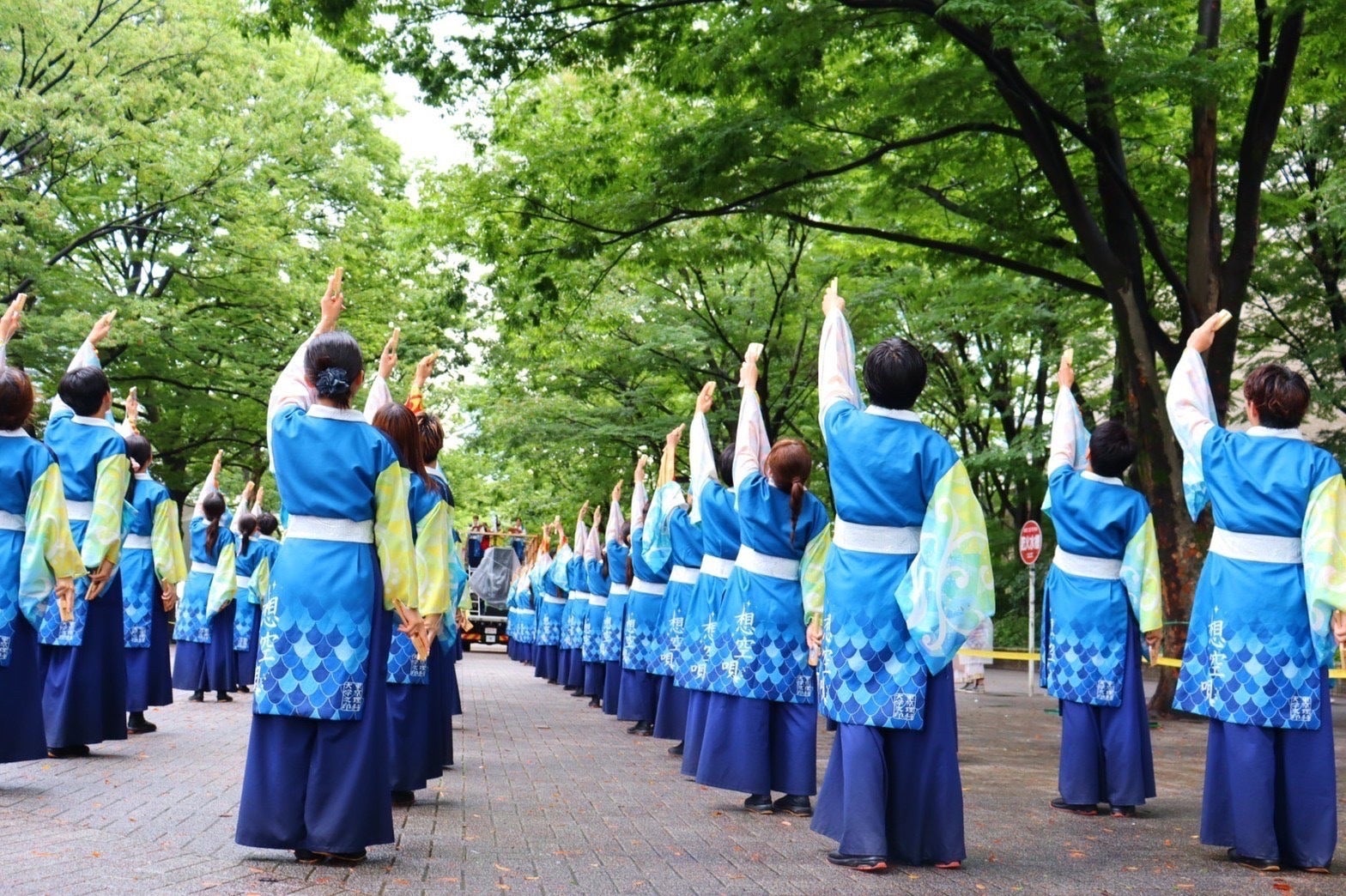 総勢100人超えの部員とともに、自分達で演舞曲、衣装、振り付けなど、1から制作した演舞を日本各地のお祭りにて披露しています。