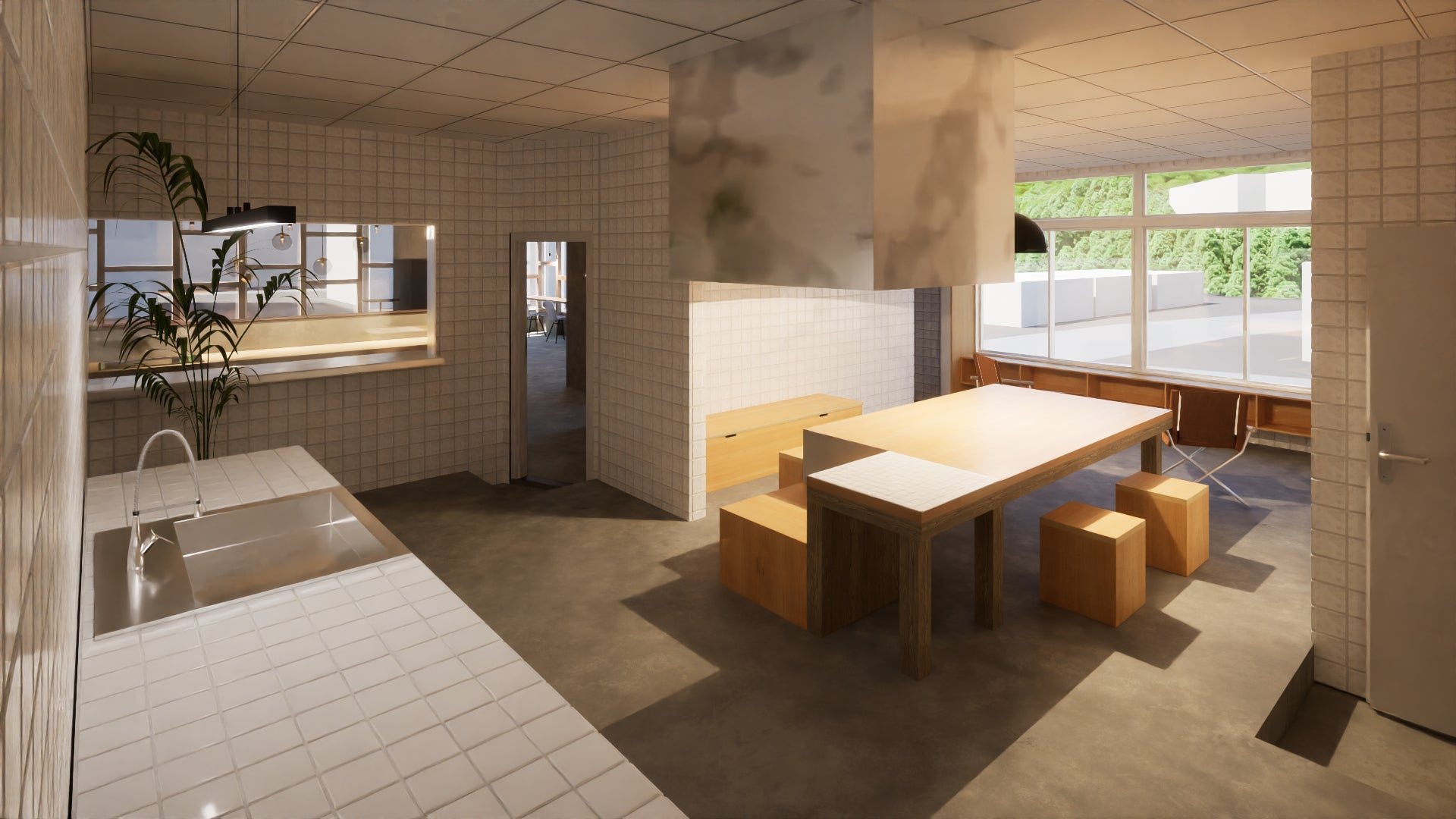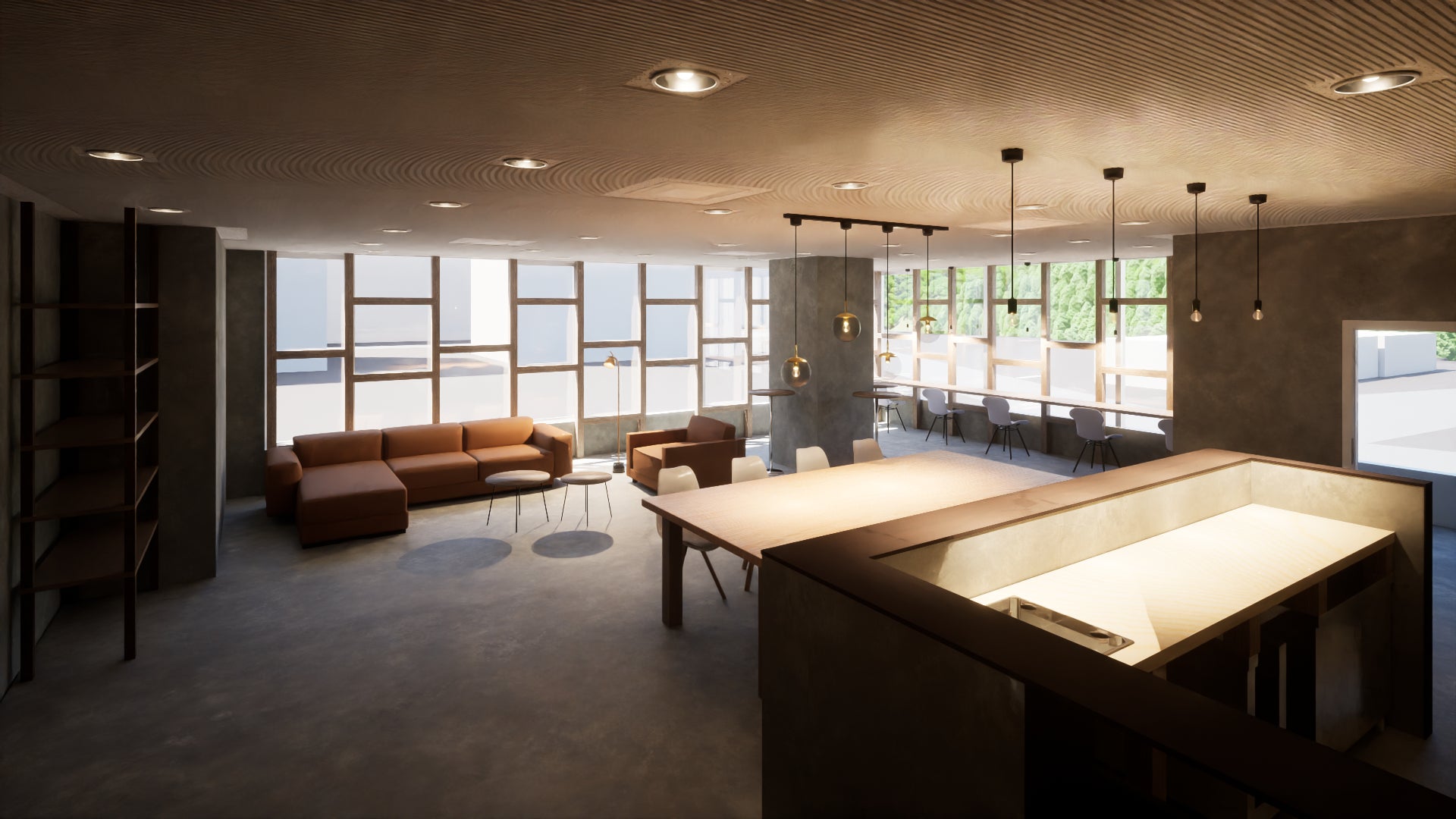 レストラン跡地の客席側はリビング&コワーキングスペースをイメージして設計しました。建物内にはマンション定住者様、リゾート利用されるオーナー様、民泊宿泊者様と様々な目的で利用される方がいます。皆様にとって居心地の良いリビングとなるような空間を考え、新潟工科大学様と連携しつつ、工事を進めながらブラッシュアップしていく予定です!