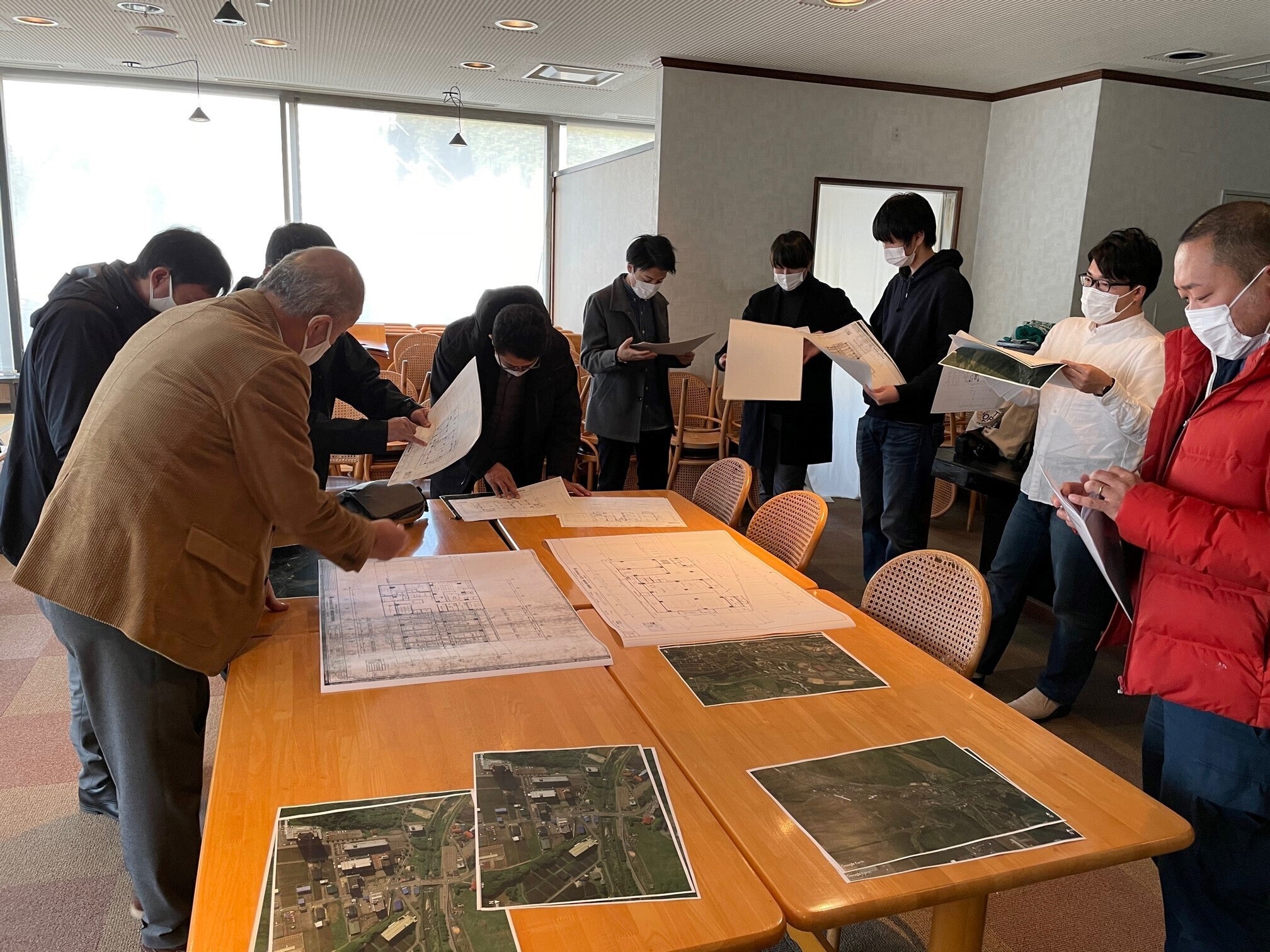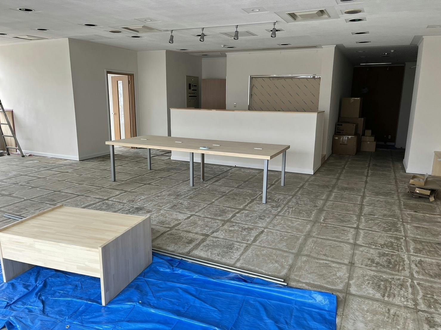 建物2階にレストランとして運営できる共用スペースがあるものの、現在では営業しておりません。空きスペースを有効に利用する為、同県内の新潟工科大学の皆様にご協力頂き、現在以下のようなスペースに生まれ変わるべく本工事を進めております。