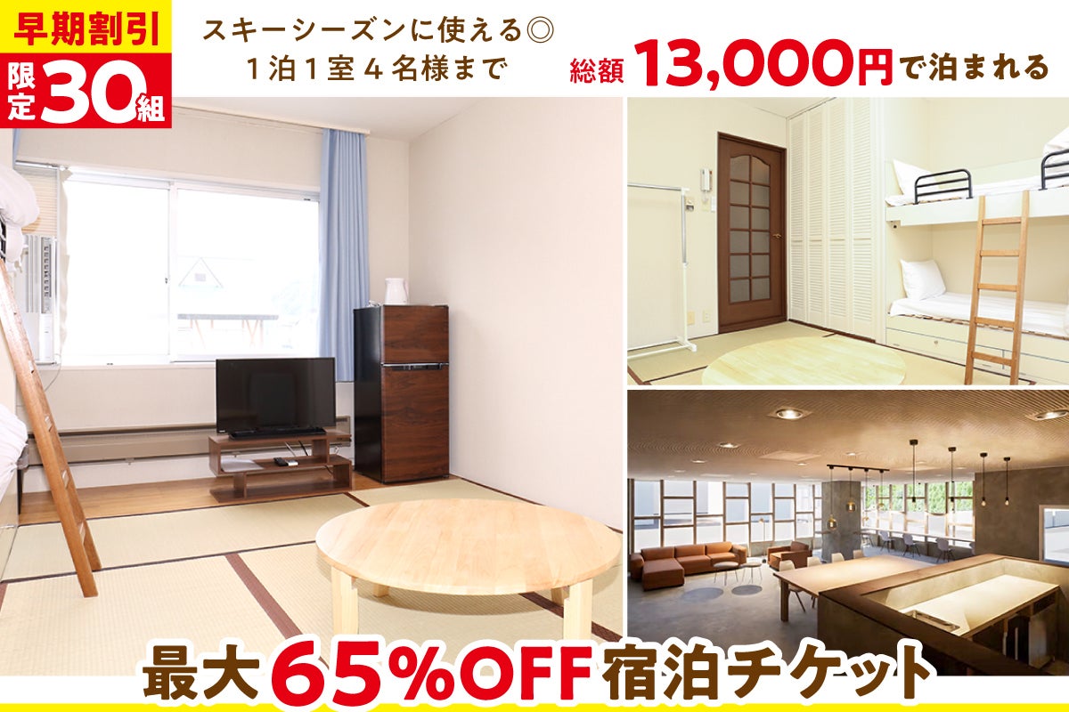 スキーシーズンに使える◎1泊1室4名様まで総額13,000円で泊まれる最大65%OFF宿泊チケット