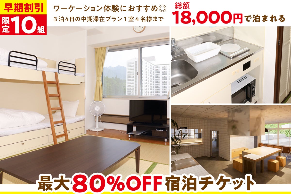 1室4名様まで総額18,000円で泊まれる最大80%OFF宿泊チケット