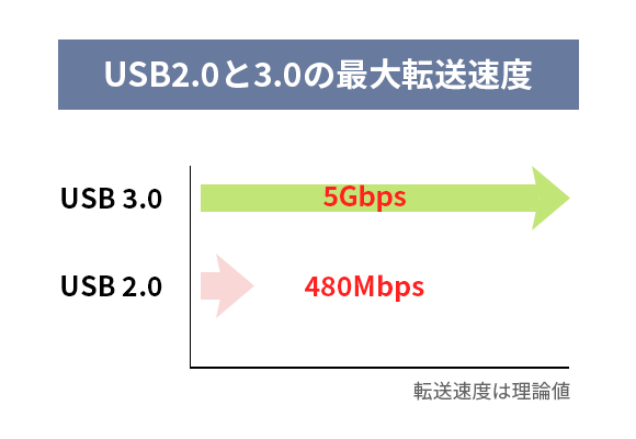 USB3.0はUSB 2.0の次世代規格で、USB 2.0への互換性は保ちながら、データ転送速度を5Gbps(USB 2.0の約10倍)にまでアップしています。