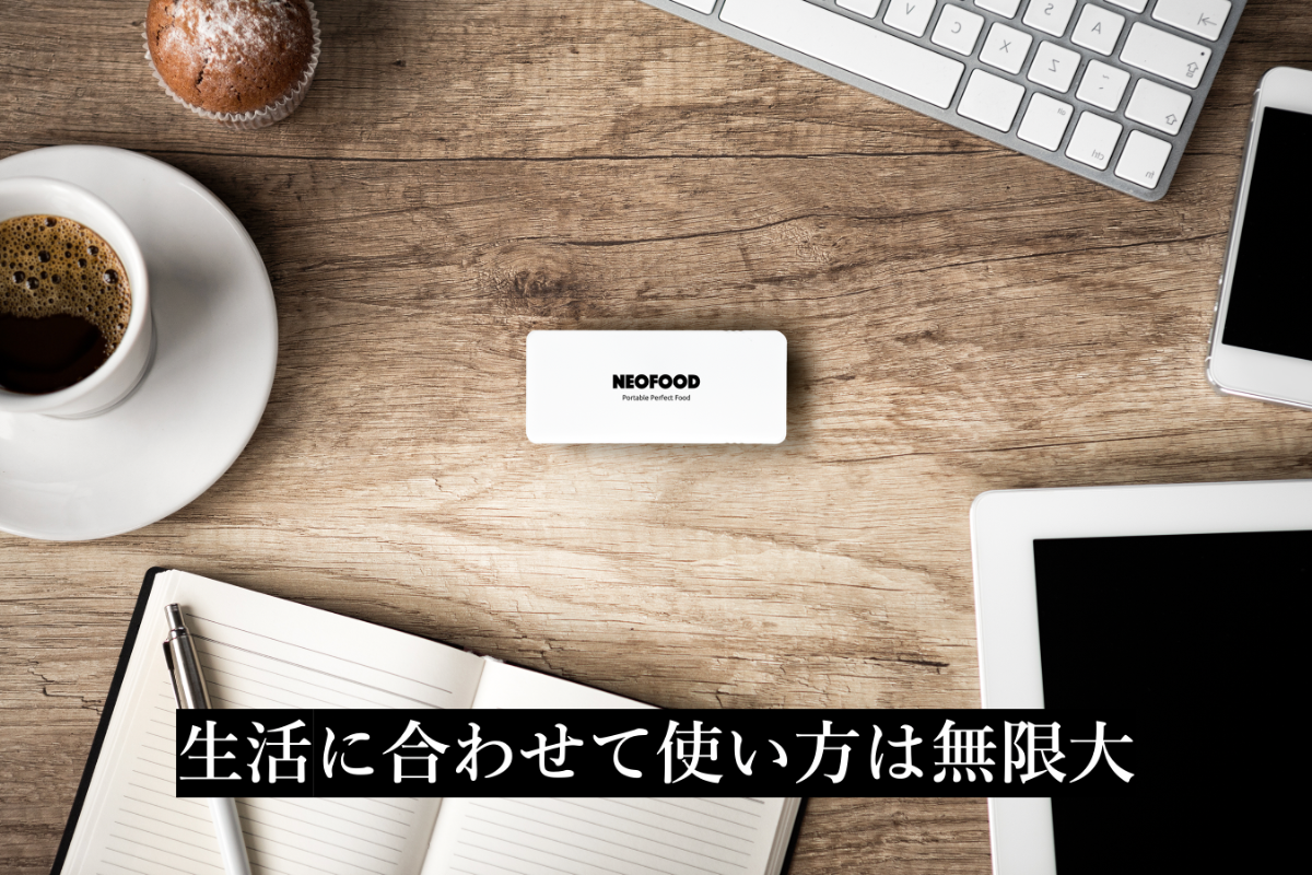 世界最小級サイズの完全栄養食としてスマホのようにポケットに入れて持ち運ぶことができます。移動中や仕事中も手軽に摂取可能。