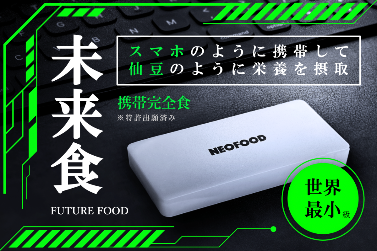 未来食のブランドに「NEOFOOD(ネオフード)」という名前をつけました。これはギリシャ語の「新しい」を意味する「NEO」と、「食」を意味する「FOOD」の造語です。ただ、もう一つの意味としてSF映画「マトリックス」の主人公「NEO(ネオ)」の名前をかけています。映画マトリックスは人類が仮想現実の中で生きている未来社会を舞台とした映画で、現在のVRやメタバース開発にも大きな影響を与えた作品です。