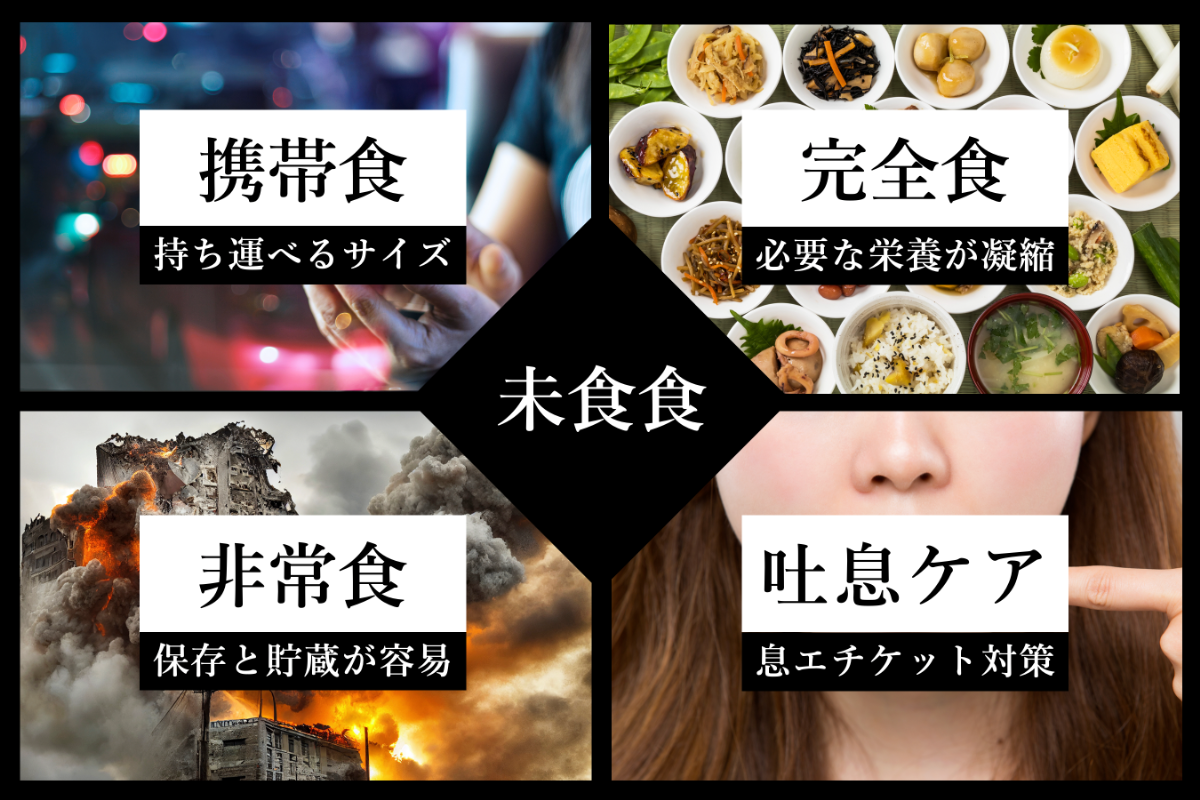 未来食 = 携帯食 + 完全食 + 非常食 + 吐息ケア