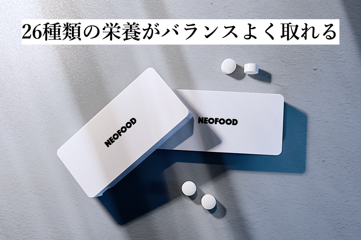 人間が1日に必要な栄養素をバランスよく摂取できます(※1)。手のひらに収まる小さなタブレットに26種類の栄養素が詰まっています(栄養素は厚生労働省の定める「日本人の食事摂取基準」をもとに選定)。