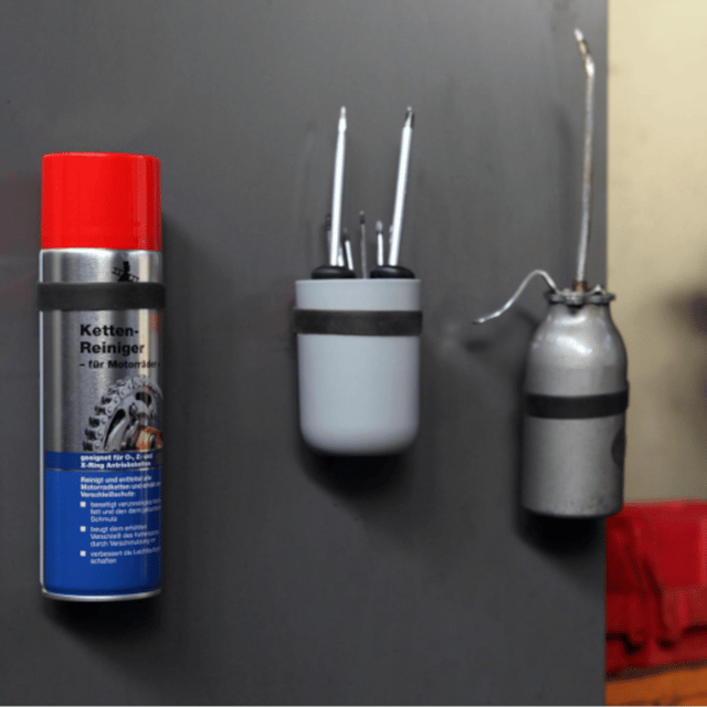 【GYMBUTLER】はもともとトレーニングマシン用に開発されたアイテムですが、スチール製のモノならどんな場所にも貼り付けられるので、収納グッズとして様々な用途でご活用頂けます。