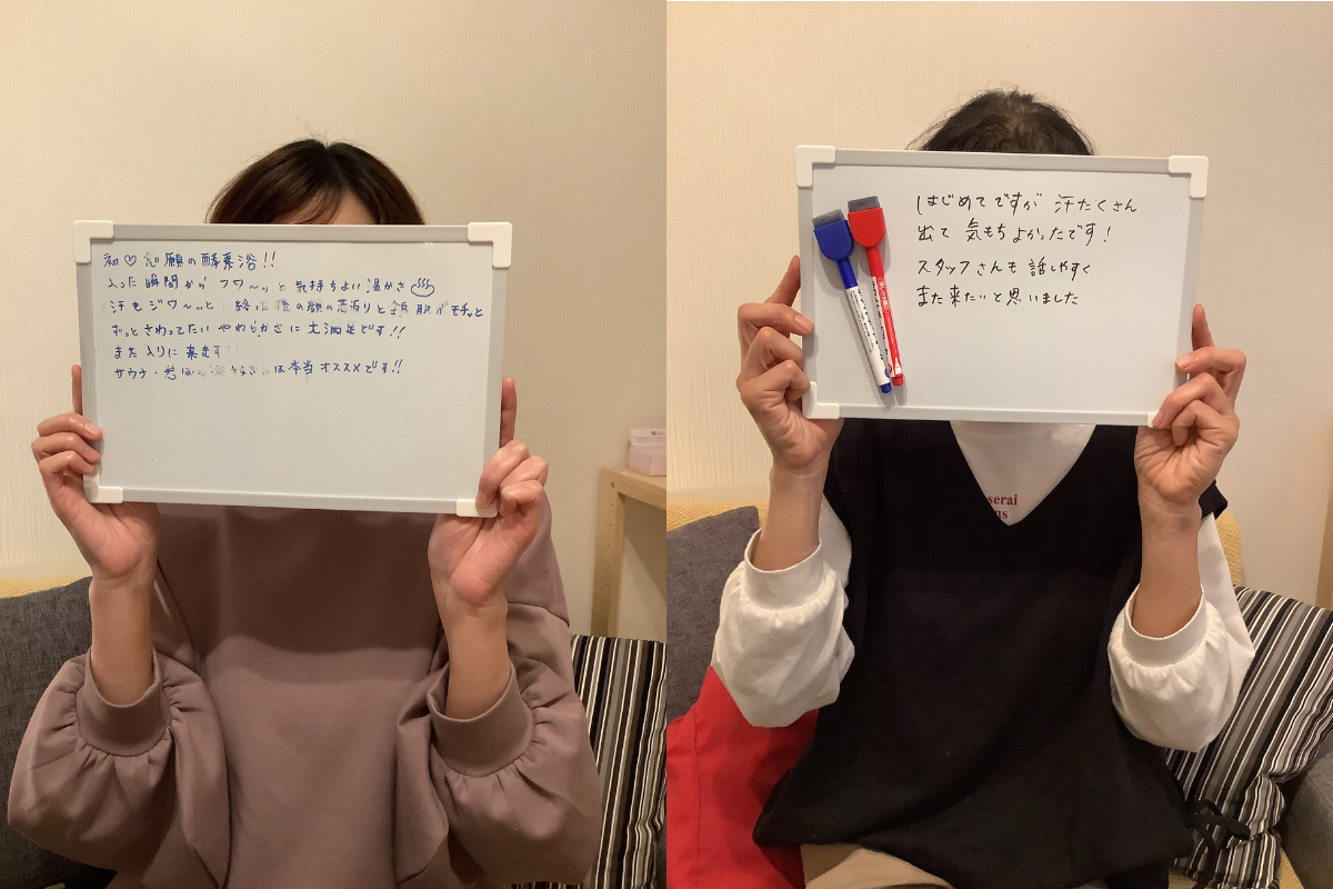 さまざまな悩みを持っていた方が酵素風呂を体験されて、それぞれにその良さを実感していただいております。