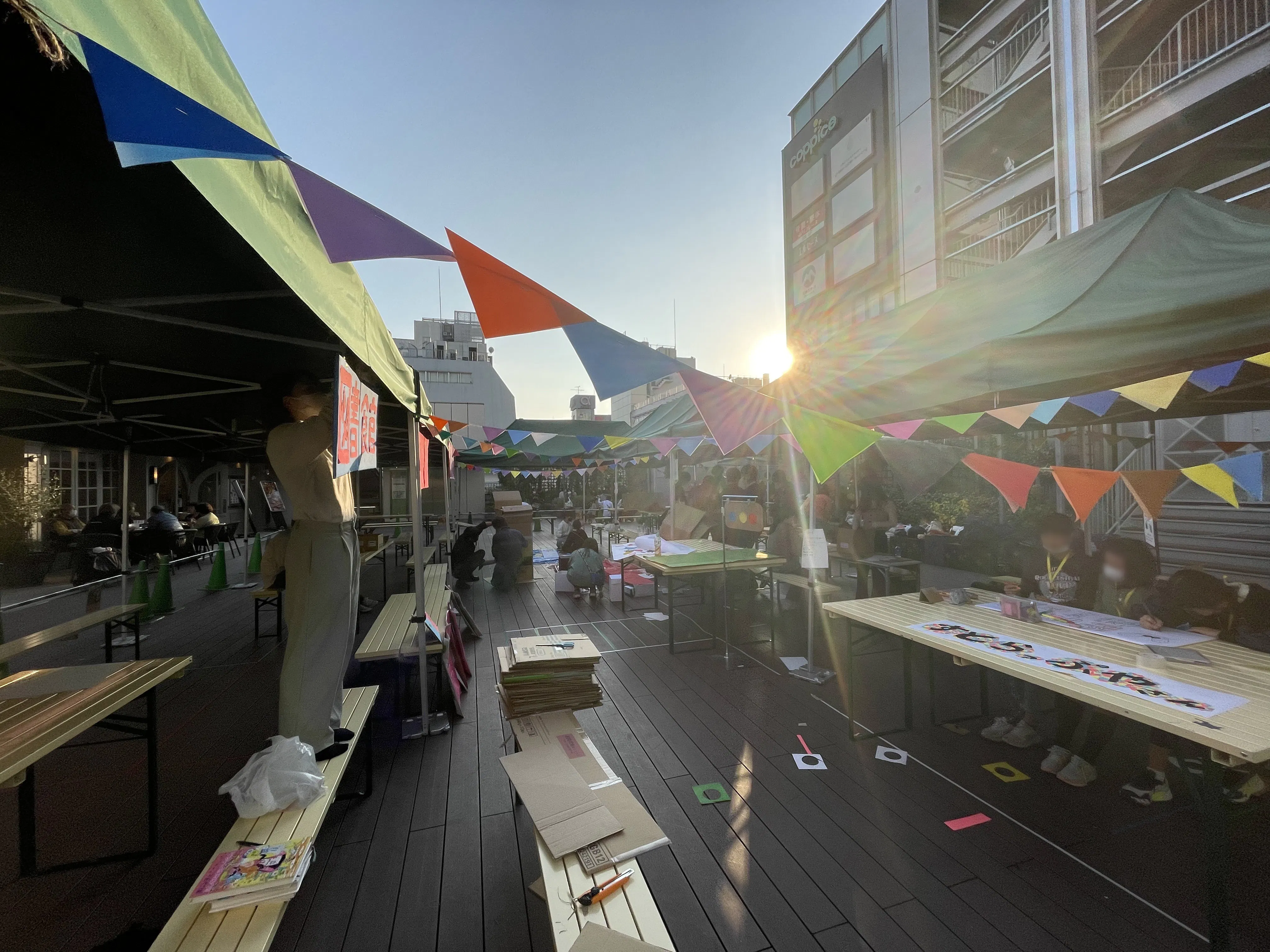 2022/11/02 11:0720万きました!!本当にご支援、ご声援ありがとうございます!!!引き続きよろしくお願い申し上げます。さてさて、イベント準備の方はというと、10月29日、第四回こども実行委員会を開催しました。今回は、まちのルールについて小中高生が一緒になって話し合ったあと、運営含め全員でブース制作を開始。中高生は前回のワークショップで考えたブース企画書を基にブースを制作。大学生ボランティアはまちの装飾品や、お店で売るアクセサリーをつくってくれました。看板はどんな色にしたらいいかな?文字のサイズはどのくらいが見やすい?など、周りとコミュニケーションを取りながら作業は進み…最初はただの段ボールだったのに、作業していくうちにお店の看板や装飾品が徐々に出来上がっていきました。今回は特別に吉祥寺で美容師をしているみなとさんが来てくださいました!ヘアアレンジのブースを出店する小学生はみなとさんから素敵なヘアアレンジを教えていただいたようです…!本番で店長にヘアアレンジしてもらうのが楽しみですね!本番まで残り約二週間、この調子で着々と準備を進めていきます…! もっと見る地元って面白い!をみんなで感じたい