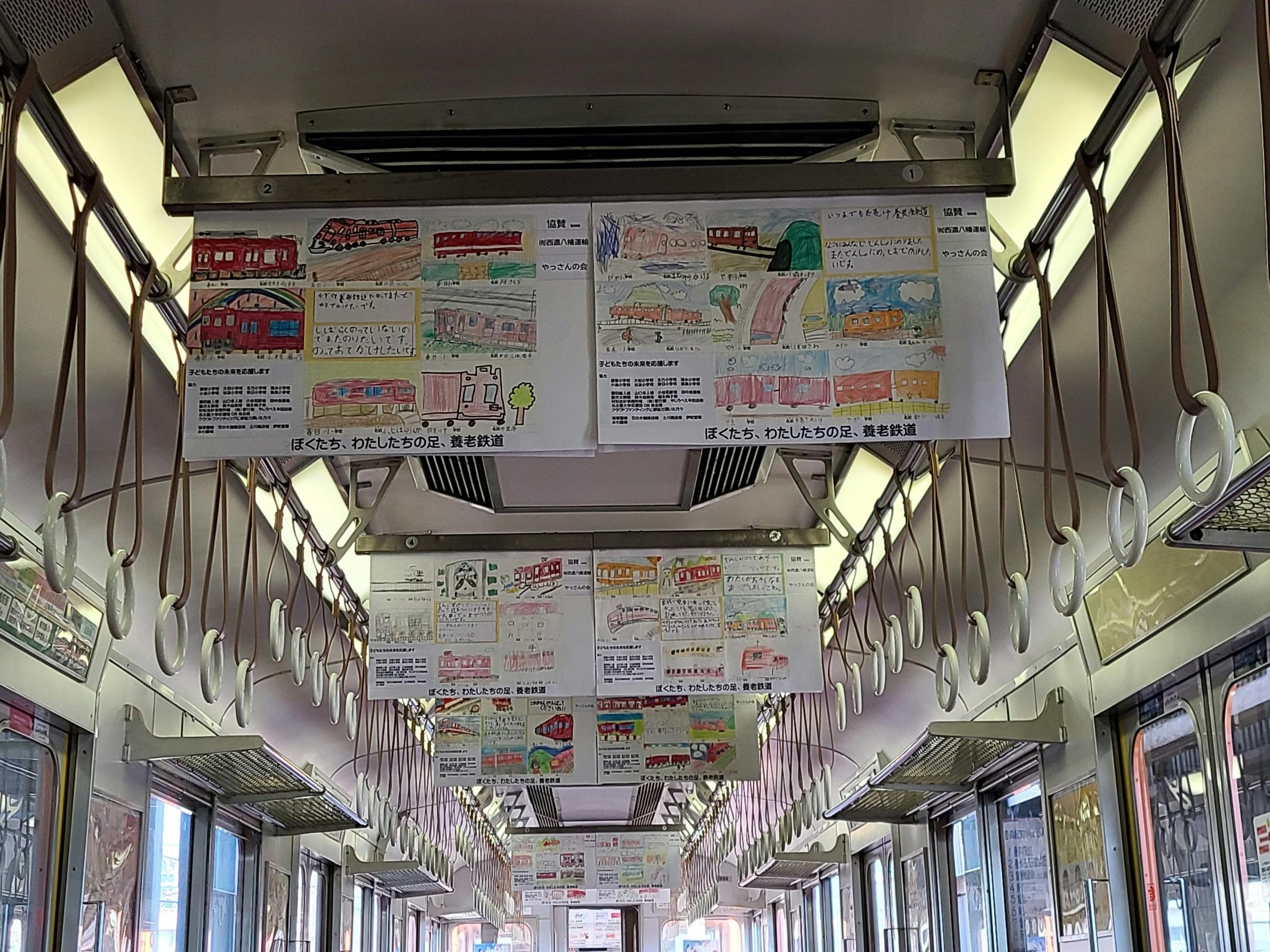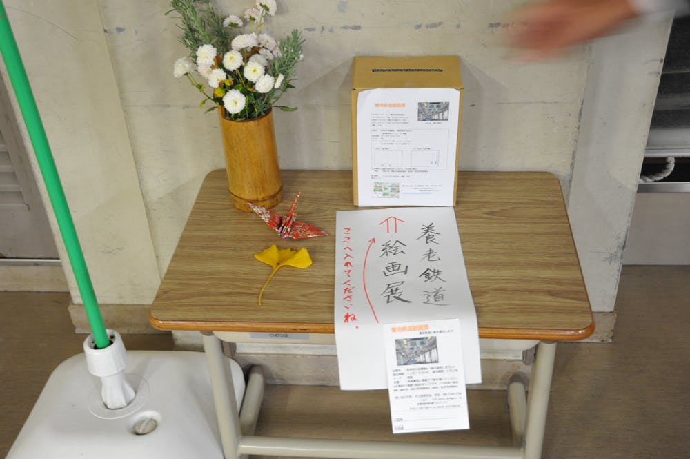 養老鉄道絵画展は、2017年に町内の揖斐小学校の1年生、37人の絵の展示からスタートしました。小さなスタートでしたが通学の足がなくなると困るという思いから地域の方には大変ご協力いただきました。2回目は、清水小学校、坂内小中学校の1年生も加わりました。(当時の清水小学校の校長先生は第1回の展示を偶然乗った車内で見かけ活動を知ったとのことです)