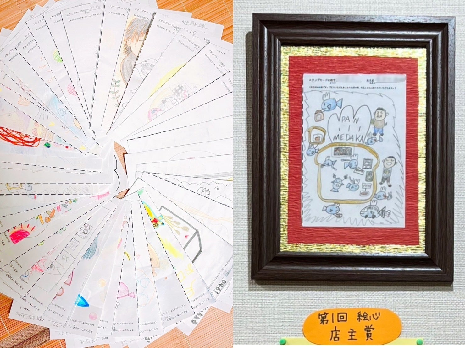 地域の方との関わりを大切にしたいという想いから、子どもから大人までご参加いただけるイベント「絵心」をオープン時から毎月行なっています。「絵心」は、店主の中学時代の恩師が授業の導入として実施していたもので当時生徒に好評だったため、めだかぱんでもイベントとして実施しています。お題を聞いて想像したものを絵に描いていただき、選ばれると150円以下のパンをプレゼントするというものです。(副賞は50円引き)ご参加いただいた全ての作品に対しては、店主からのコメントをつけて返却しています。現在まで総勢200名様ほどのお客様にご参加いただいています。