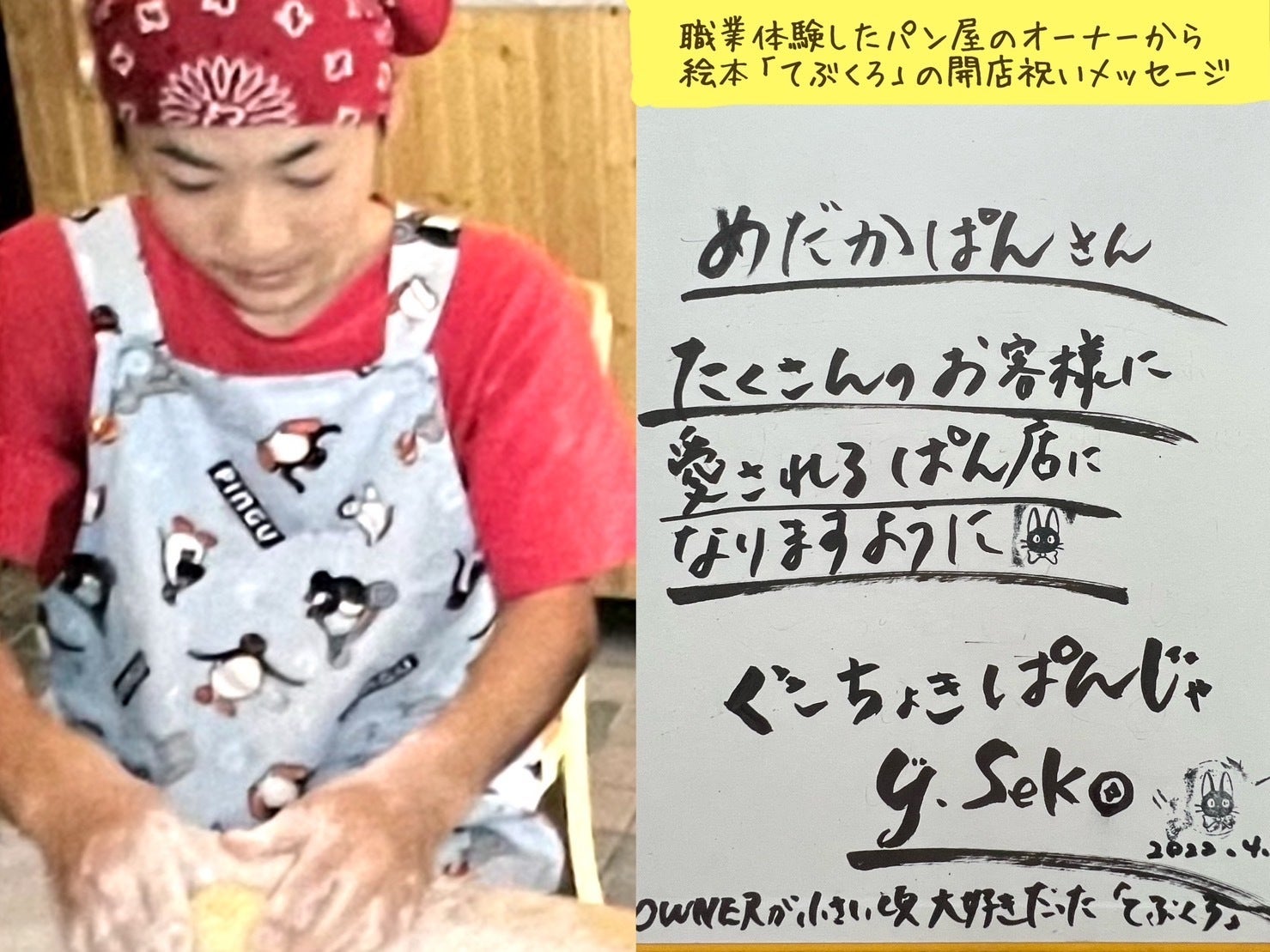 店主は、中学時代の職業体験でパン製造を体験して以来、パンの魅力に取り憑かれ、家の家庭用オーブンでパンを焼いては一人で食べて試行錯誤を繰り返していました。その後大学時代のアルバイトから本格的にパン製造を学び、今年4月に夢だったパン屋開業を実現しました。職業体験したパン屋「ぐーちょきぱんじゃ」は店主が幼少期から通っていたお店で、めだかぱんの開店を喜んでくださっています。