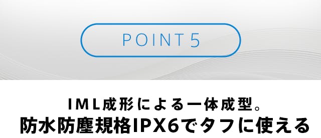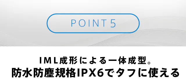 ケースは本体と保護フィルムを一体成型するIML成形製造しているため、美しいボディラインを実現。