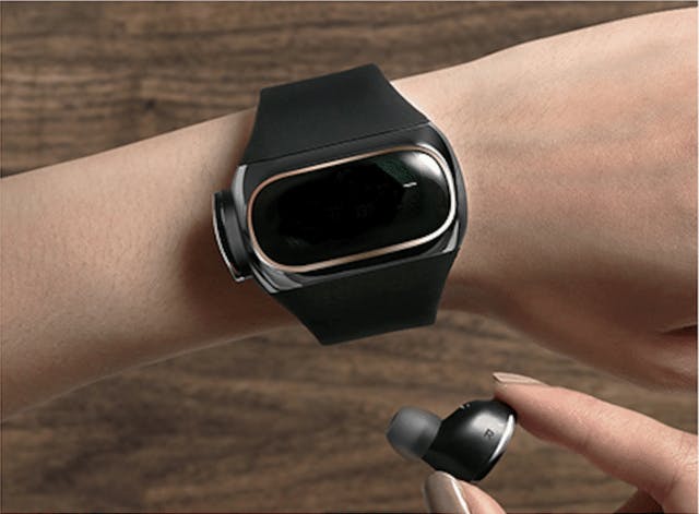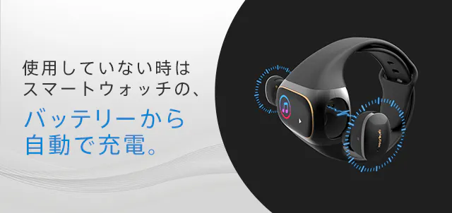 さらにスマートウォッチ本体がワイヤレスイヤホンの充電ステーションを兼ねており、使用していない時はスマートウォッチのバッテリーから自動で充電。