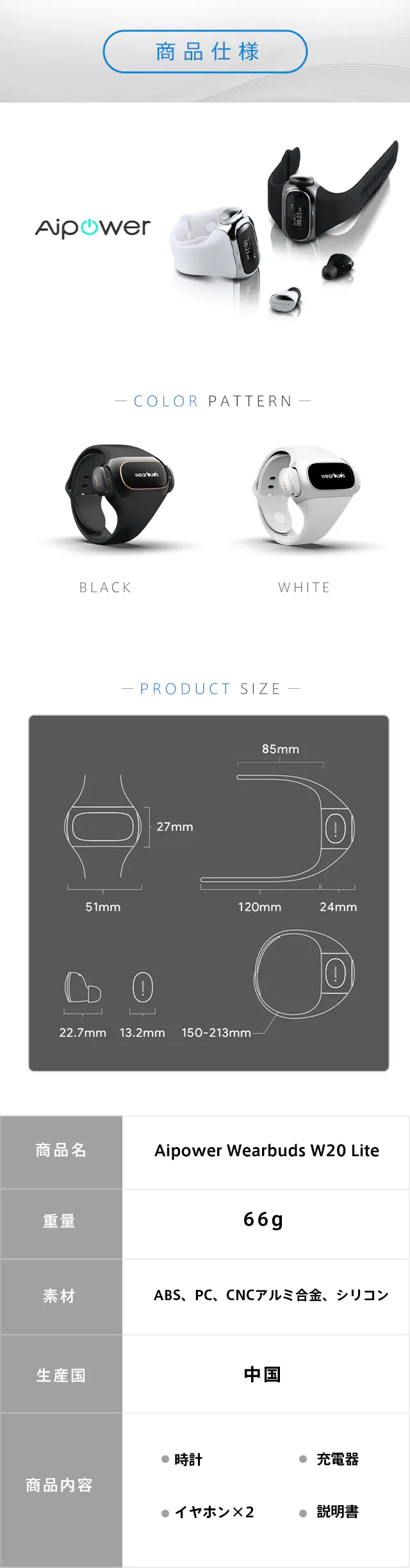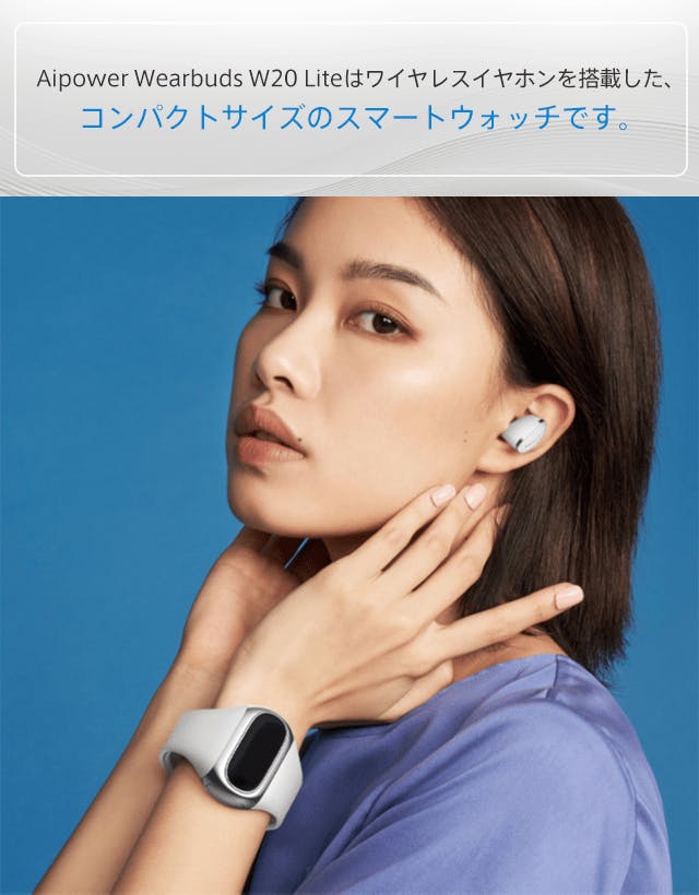 【Aipower Wearbuds W20 Lite】はワイヤレスイヤホンを搭載したコンパクトサイズのスマートウォッチです。