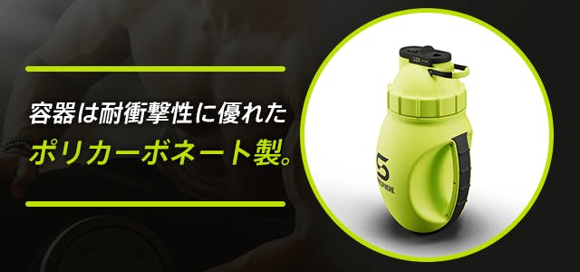 また、前後に振った時に液体が容器にピンポイントで当たるため、衝撃で水が拡散しやすく、プロテインか均一に効率良く混ざり合います。