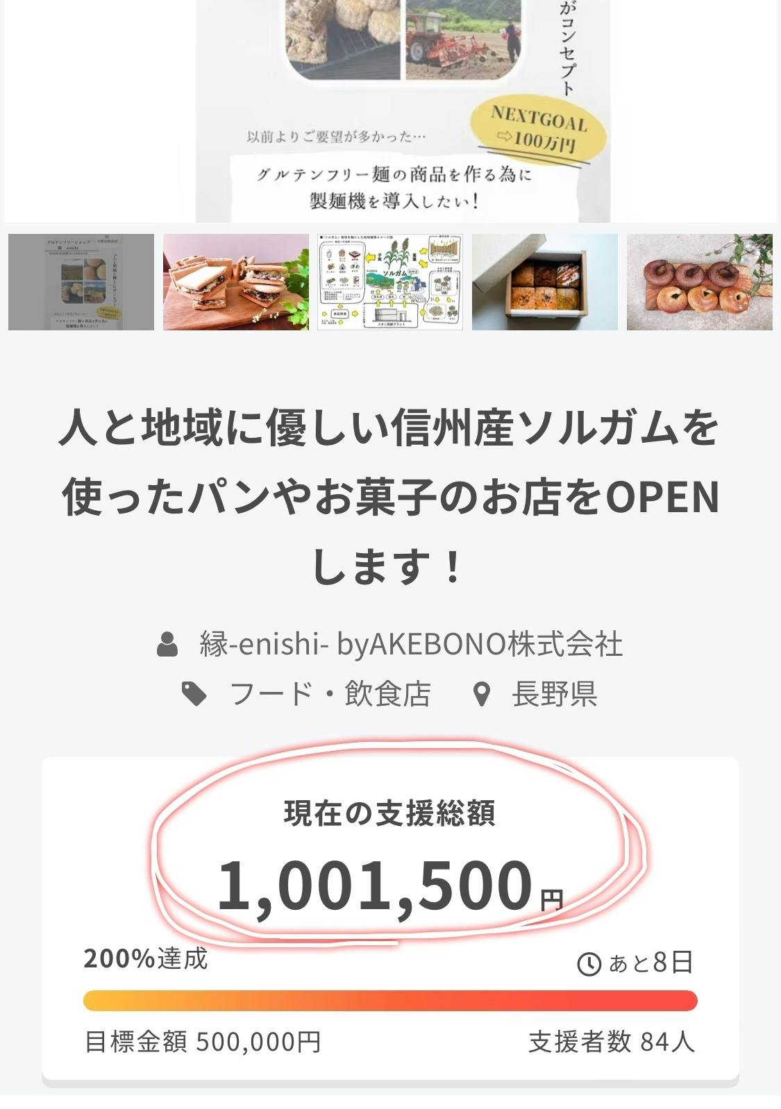 2023/02/20 15:29なんと…ネクストゴールで目標としていた100万円ですが皆様のご支援のおかげで無事、200%達成することができました!ほんとにほんとにありがとうございます…!!店舗のOPEN予定は3月下旬予定ですが店舗の詳しい詳細などはインスタグラム@sorghum_enishi の方で発信していますのでぜひチェックしていただけたら嬉しいです! もっと見る