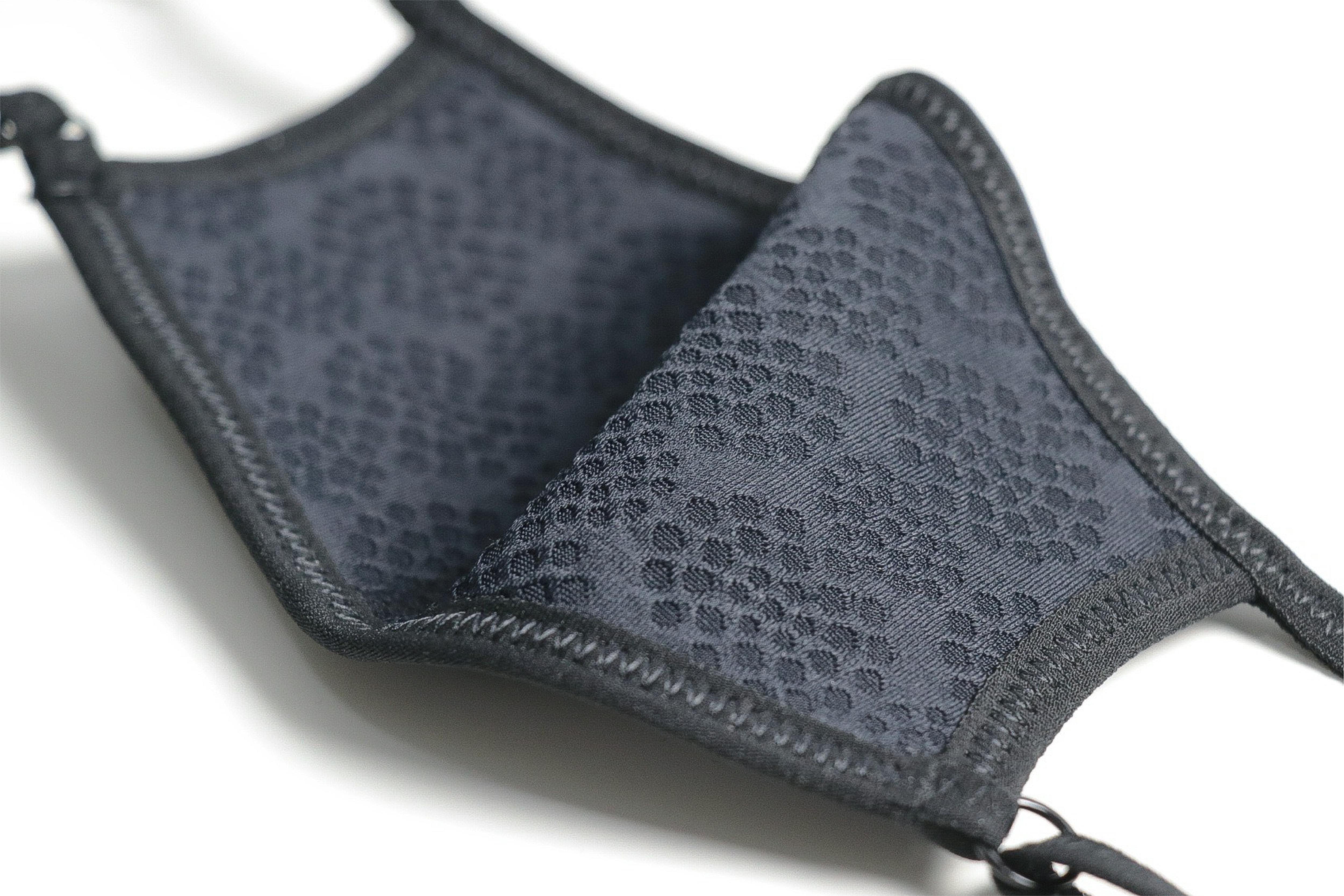 マスクの形は3D立体構造、口元に空間を作りながらも密閉性を損なわない作りとなっており、口元を丸く綺麗にするフォルムは前から見ても横から見てもスタイリッシュに魅せてくれます。