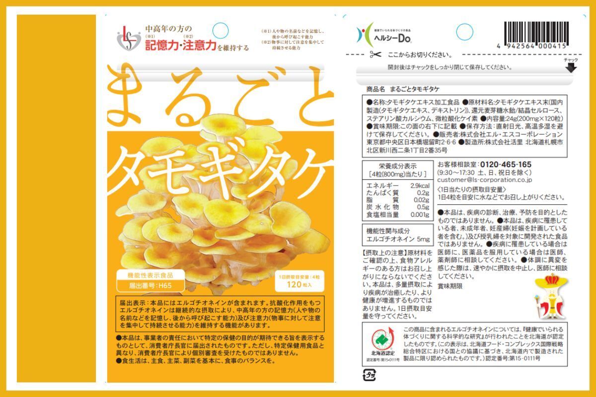 現在当社は、2021年11月に健常者及び軽度認知障がい(MCI)に対応した機能性成分のエルゴチオネインを配合した新商品のサプリメント「まるごとタモギタケ」の販売を展開中です。この商品は、北海道が認定するヘルシーDo認定商品となっておりますが、今回新たに機能性表示商品として消費者庁への届出が受理されました。この機会をチャンスに北海道や東北地方の一部でしか知られていないタモギ岳を日本全国に広めていきたいと思い、プロジェクトを立ち上げました!