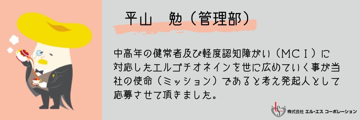 今回、軽度認知障がい対策としての社会貢献を通じて多くの人々の賛同を得てこのプロジェクトを成功させたいと思っております。