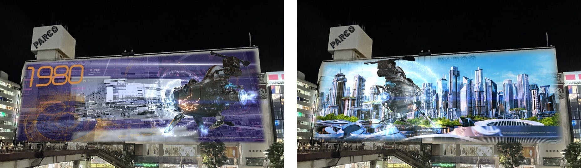 しかし、パルコ壁面を全面に使った、これだけ規模の大きなプロジェクションマッピングを駅前の便利な場所で見たことのある方はほとんどいらっしゃらないと思います。