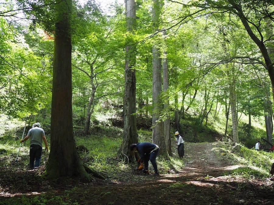 ◯森林整備体験 SET 【数量限定】/ 山梨県道志村「養老の森」での森林整備活動を体験していただけます。森の再生を実践で学べます。あくまで軽作業ですのでご安心下さい。もちろん「わさび田」再生の経過視察も含まれています。※お昼お弁当・飲料が付きます。その他に鮫皮わさびおろし、MY BOTTLE PLUS+、BELAYER NOTEのプロダクトも付きます。