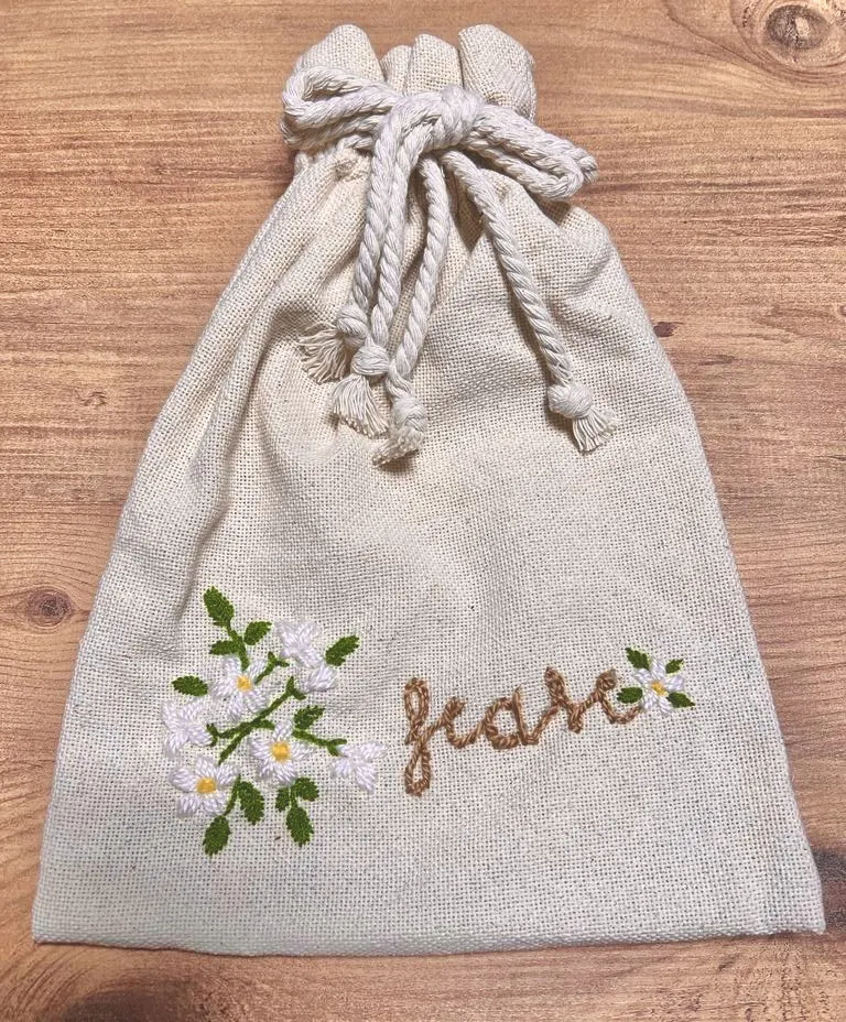 ・手作りギフトバック/刺繍-ジャスミン ※サイズ縦220cm× 横210cm