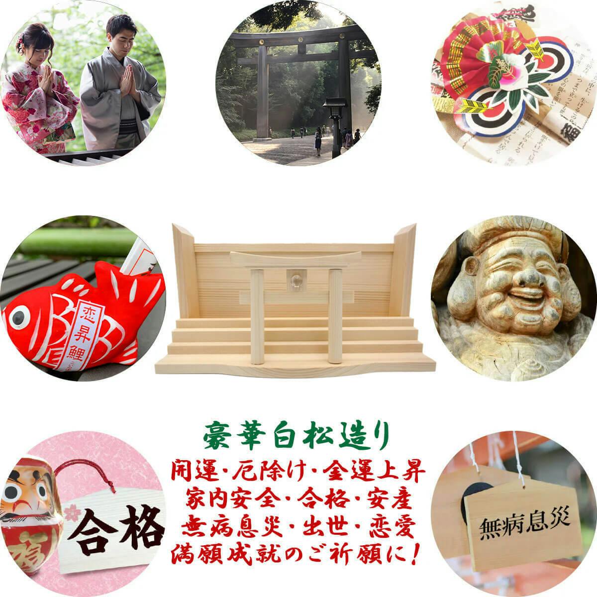 コンパクト設計により、置き場所にも困りません。ご自宅、オフィス、店舗など、きれいにセンス良くお祀り頂けます。