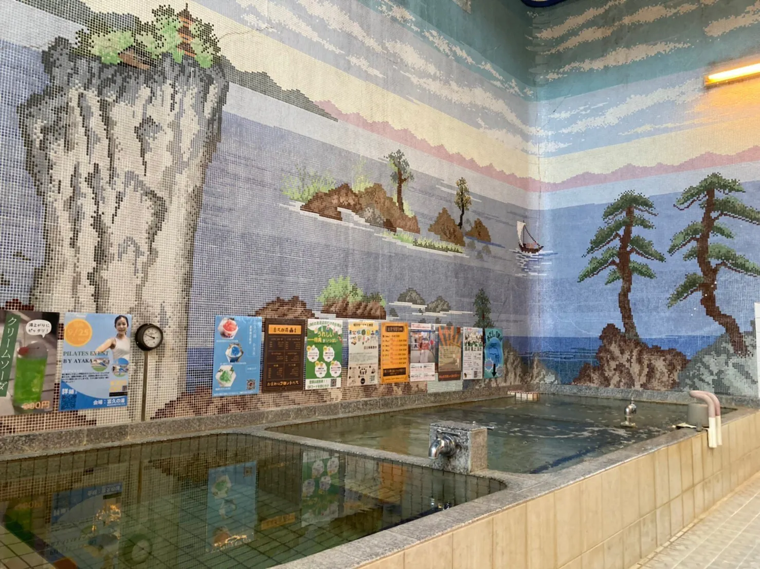 ・富久の湯おすすめポイント:浴室の奥に描かれた大きなタイル絵は見応えがあります!脱衣所や待合室のソファの座り心地も良いので、入浴後にゆったりできます!