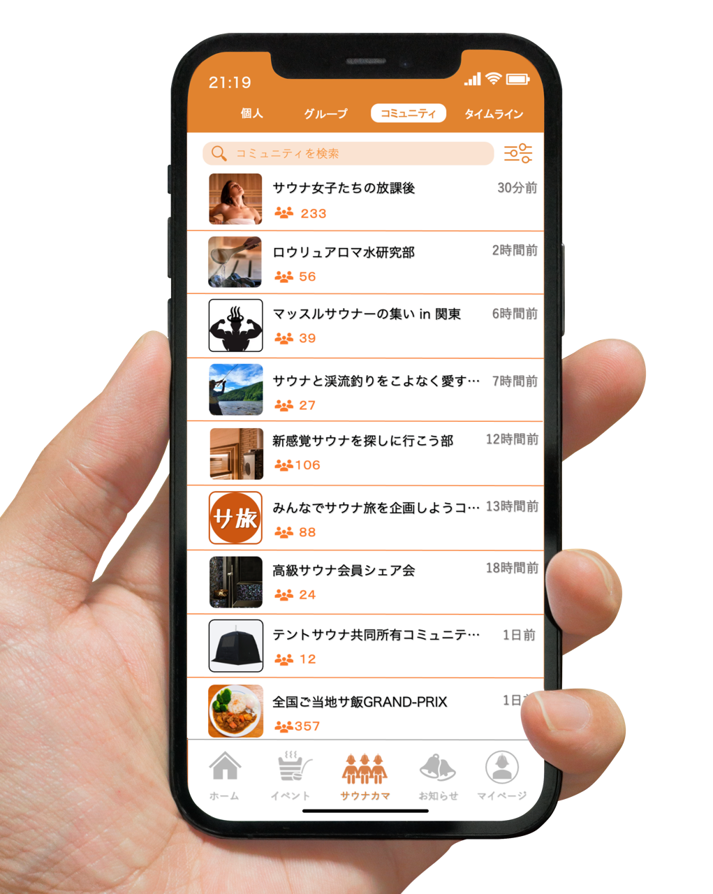 サウナ好きだけが集まるグループチャットや個別チャットで、サウナのマニアックな会話やオフ会の企画なども皆さんで存分に楽しんでください。