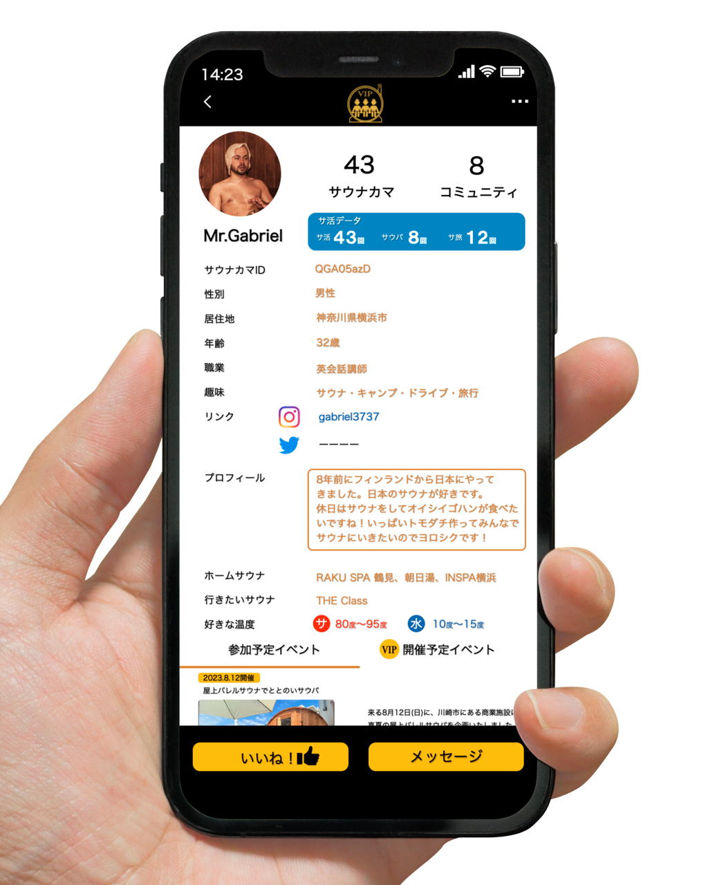 また、InstagramとTwitterのリンクも貼れますので、サウナカマ以外での日常をお互いに知り合うこともできます。