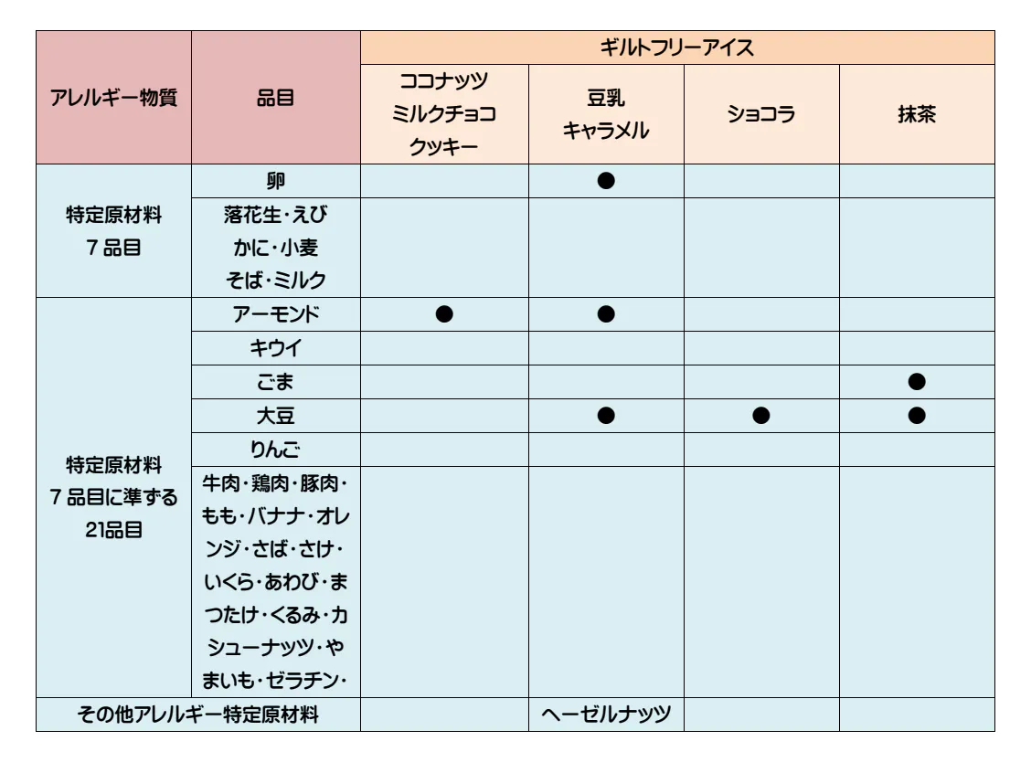 トランス脂肪酸不使用トランス脂肪酸は、マーガリンやショートニング、食用調合油などに含まれており、悪玉コレステロールが増えると言われています。ギルトフリーアイスはトランス脂肪酸を一切使用しておりませんので、安心してお召し上がり頂けます。