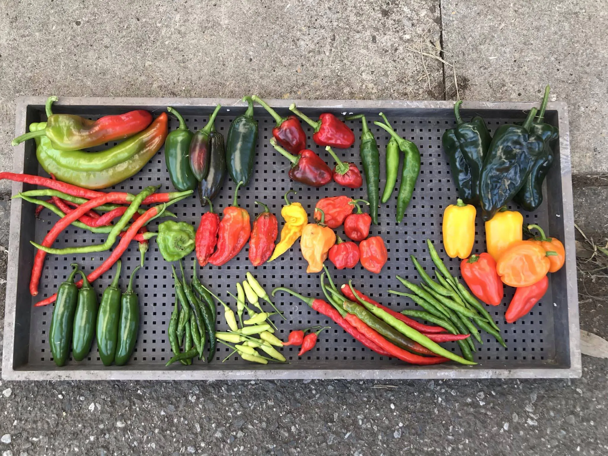 とうがらしは、ハラペーニョ(緑)とセラーノ(赤)を使用予定。