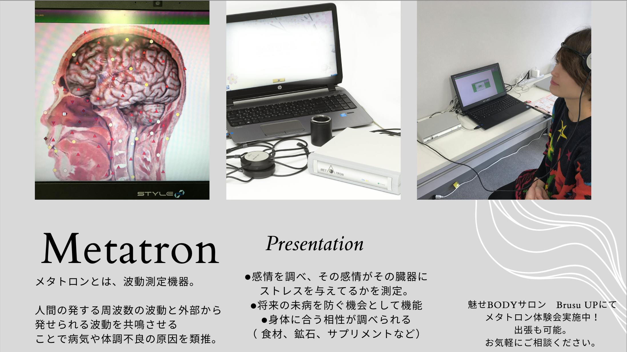 2023/03/01 17:00こんにちは!木村慈子(よしねぇ)です!昨年11月にクラファンが終了し、改めて沢山の応援をありがとうございました!その後、少しずつではありますが、物品の導入、HP、イベント等進めております。今回サロンに今話題の、新しい機械を導入しました!「メタトロン」メタトロンとは、元々宇宙飛行士の健康管理のためロシア開発された医療機器です。日本ではまだ医療機器として認められていませんが、未来の技術として注目されている話題の波動測定機器です。人間の発する周波数の波動と外部から発せられる波動を共鳴させることで病気や体調不良の原因を類推します。【メタトロンで得られる事象】・感情を調べ、その感情がどの臓器にストレスを与えてるかが分かる。・将来の未病を防ぐ機会として内臓、骨、血管、脳、全ての今の状態を把握。・身体に合う相性が調べられる(アレルギー、食材、鉱石、サプリメントなど)・チャクラの状態が分かり、メタセラピーで調整できる。など、とにかく私たちの身体の幅広いところまで細かく測定していくので、今の身体の現在地が分かり将来の不安や心配などの感情コントロールへも期待されています。当サロンで体験会やメタトロン測定もご用意しておりますので、ご興味のある方はぜひお気軽にご連絡頂けたらと思います。3月8日、9日は東京、3月23日、24日は広島にてメタトロン体験会を実施予定。私たちの活動の土台であるカラダ。しっかり状態を把握した上で行動していくことが、夢を叶える最速の方法だと考えております!皆様と2023年も向上しながら進んでいけることを楽しみにしております!また活動報告させていただきますね。いつもありがとうございます。魅せボディサロン Brush UP 代表 木村慈子 もっと見る応援ありがとうございました!随時、リターンを行っております!