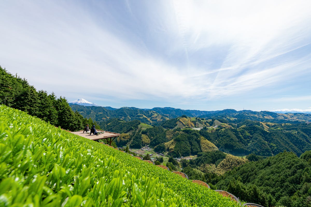 2019年からは、急峻な山間の茶畑でティーテラス『天空の茶の間』をスタート。駿河湾や富士山、雲海などの眺めが素晴らしいと、あれよあれよと話題となり、予約の取れないテラスとなっていました。