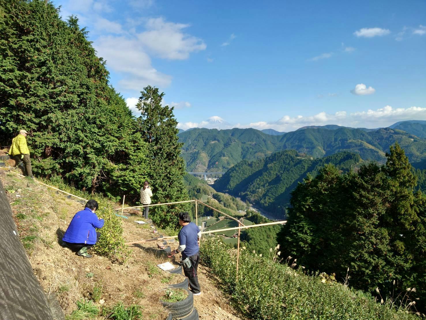 そのために、被災しなかった茶畑の中から「新・天空の茶の間」の候補地を選定。再建に必要な費用も見積りながら、天空の茶の間復活に向けて動き始めています。