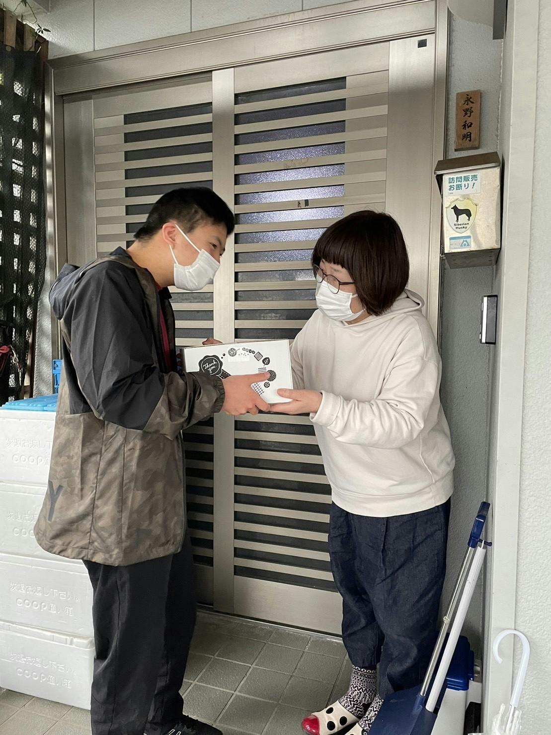 お届け先で、おしゃべりしたり写真を撮らせていただき、その様子を、送り主様へメールや動画でお伝えするという、あなたとあなたの大切な人をつなぐパンの輪プロジェクトです。
