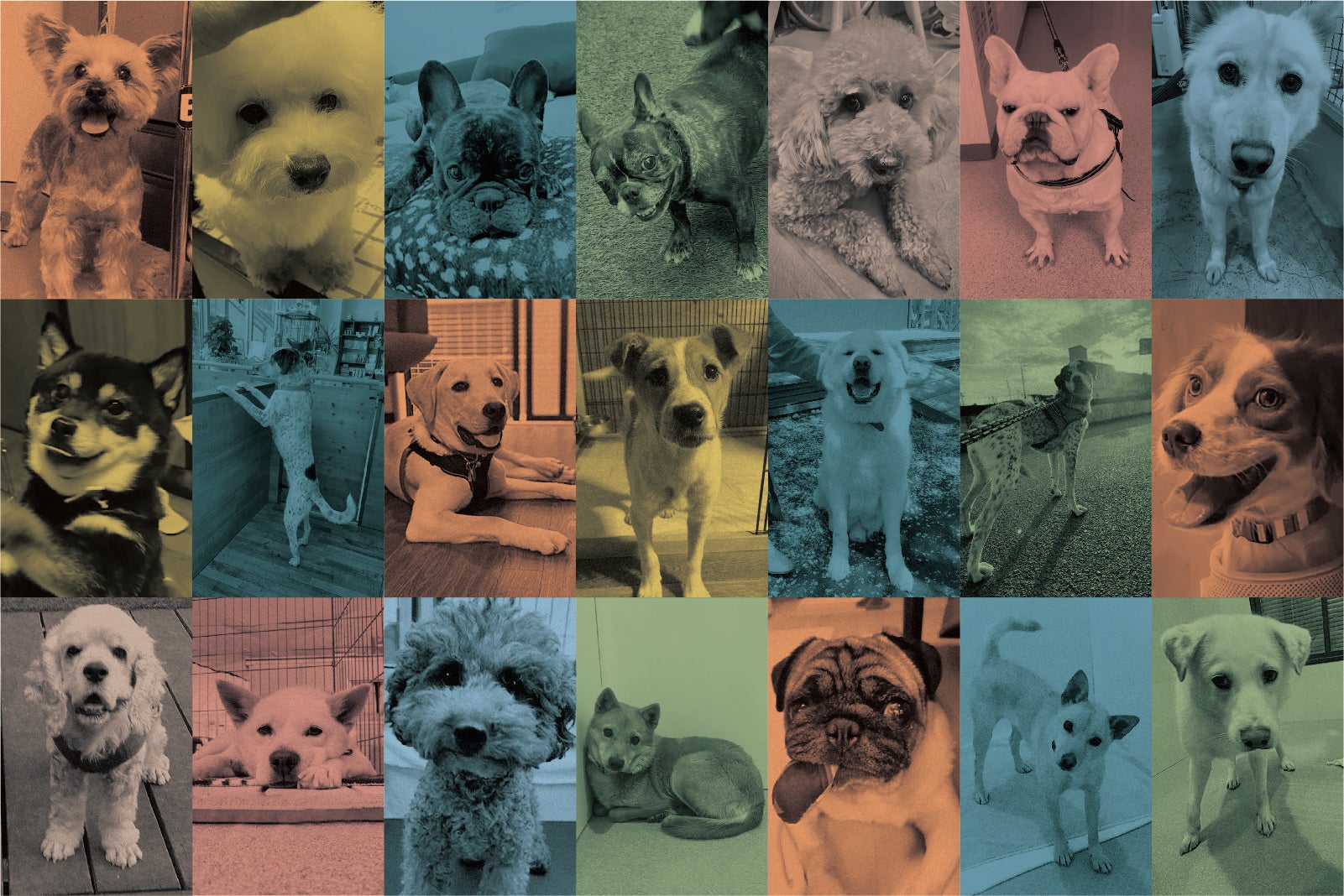 一面にプリントされた個性豊かな犬たちのインパクトは、見た人の印象に残るはず。