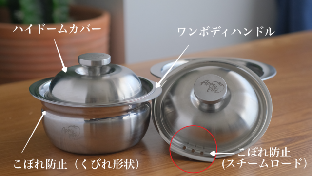 丸っと5層構造で鍋底から温められた熱が均一に側面と上部まで伝わり効率よく調理ができるのがアップルポットの魅力です。