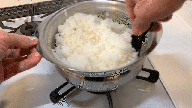 ⑥蒸らし終わったら蓋を開け軽くほぐし余分な水分をとばしましょう!